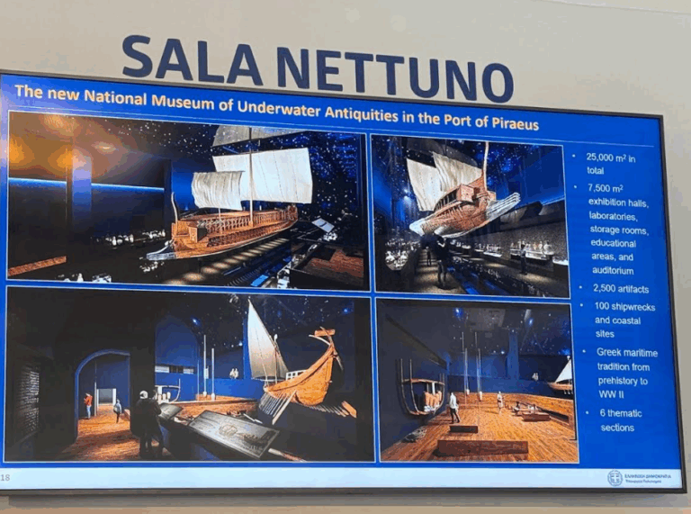 Εκτενή αναφορά έκανε στην ίδρυση του Εθνικού Μουσείου Εναλίων Αρχαιοτήτων, ενός εμβληματικού έργου το οποίο θα στεγαστεί στο κτήριο του ΣΙΛΟ, την π. σιταποθήκη της δεκαετίας του ’30 στο λιμάνι του Πειραιά. Η ίδρυση του Μουσείου, πέραν της ανάδειξής του σε τοπόσημο, στο μεγαλύτερο λιμάνι της χώρας μας, συμπληρώνει ένα σημαντικό κενό στο μουσειακό χάρτη της πατρίδας μας. Η Ελλάδα, κατ΄εξοχήν ναυτική χώρα, δεν διαθέτει μέχρι σήμερα ένα Μουσείο για την προβολή της ενάλιας πολιτιστικής της κληρονομιάς της, από την απώτατη προϊστορία ως τον Β΄ Παγκόσμιο Πόλεμο. Μέσα από περιβαλλοντικές και τεχνολογικές καινοτομίες, το Μουσείο ιδρύεται για να αποτελέσει σημείο αναφοράς, όχι μόνο στη μουσειολογική του σύλληψη και τα εκθέματα υψηλής αξίας που θα φιλοξενεί, αλλά και ως εκπαιδευτικό και συνεδριακό κέντρο, διεθνούς ακτινοβολίας.