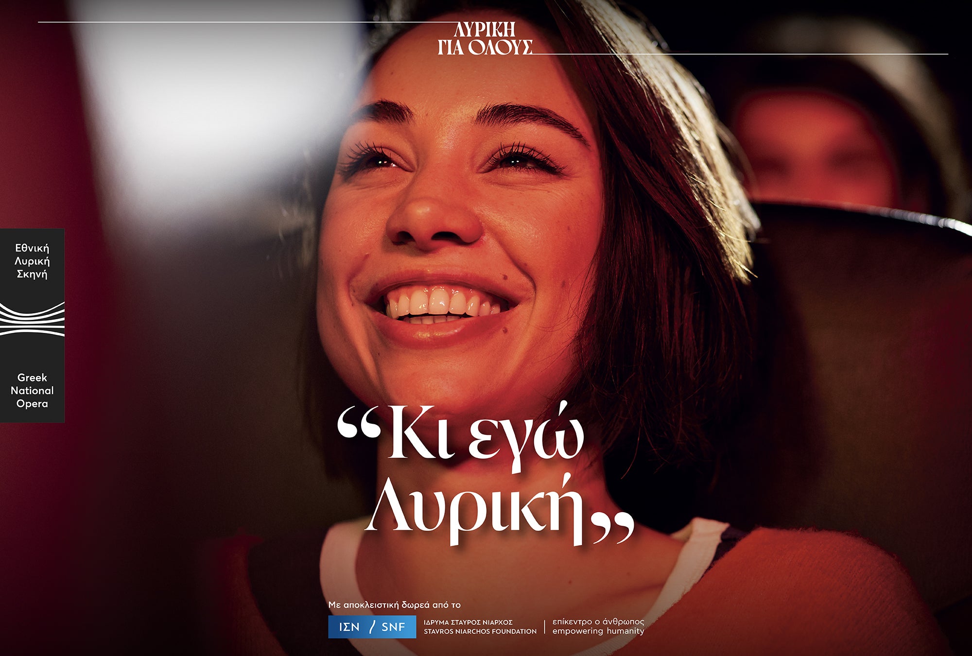 Η Εθνική Λυρική Σκηνή διευρύνει την κοινωνική της πολιτική εγκαινιάζοντας τη νέα δράση «Λυρική για όλους», προσφέροντας 10.000 δωρεάν θέσεις σε παραστάσεις στην Αίθουσα Σταύρος Νιάρχος, σε νέους 17-22 ετών, άτομα άνω των 65 ετών, πολύτεκνους και άνεργους συμπολίτες μας.