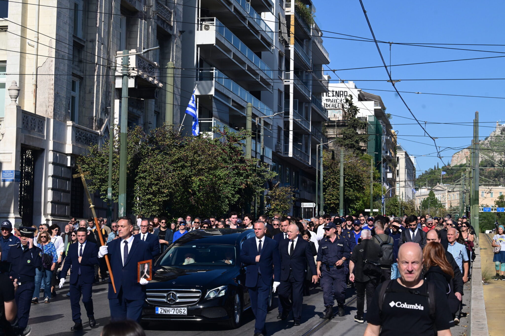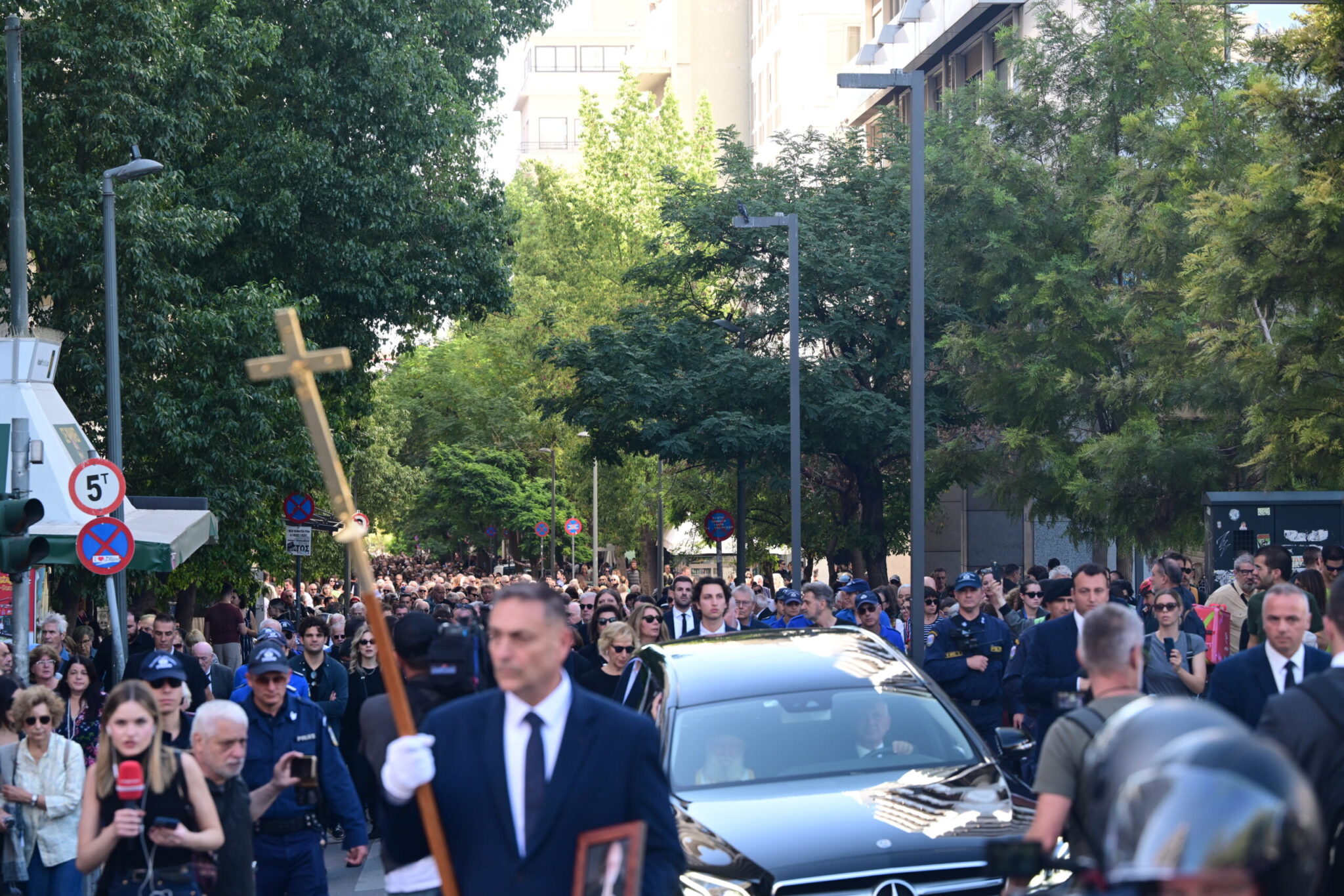 Κατά την έξοδο της σορού του από τον ναό της Μητρόπολης,όπου τελέστηκε νωρίτερα σε κλίμα συγκίνησης η εξόδιος ακολουθία χοροστατούντος του Αρχιεπισκόπου Αθηνών και πάσης Ελλάδος Ιερώνυμου, η μπάντα του Πολεμικού Ναυτικού παιάνισε τη «Συννεφούλα» και το «Μη μιλάς άλλο για αγάπη» με τον κόσμο να χειροκροτά και να τραγουδά τα λόγια των αγαπημένων του τραγουδιών.