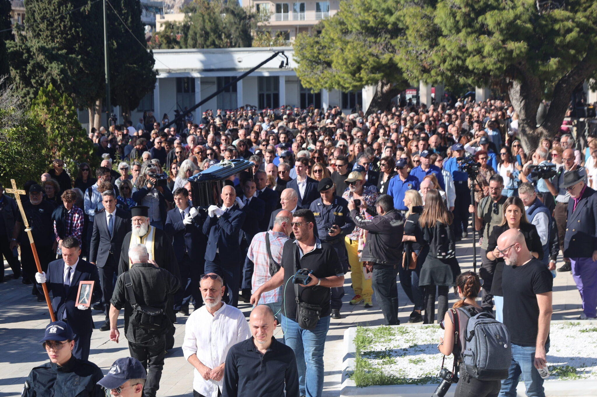 Επικήδειους εκφώνησαν μεταξύ άλλων ο πρωθυπουργός Κυριάκος Μητσοτάκης, η τέως πρόεδρος της Δημοκρατίας Κατερίνα Σακελλαροπούλου, η Δήμητρα Γαλάνη, ο Αλκίνοος Ιωαννίδης, ο Γιώργος Σκαμπαρδώνης, ο γιος του, ο εγγονός του, ο Σταμάτης Φασουλής, η γιατρός Α. Κοτανίδου και ο Α. Κυριτσόπουλος.