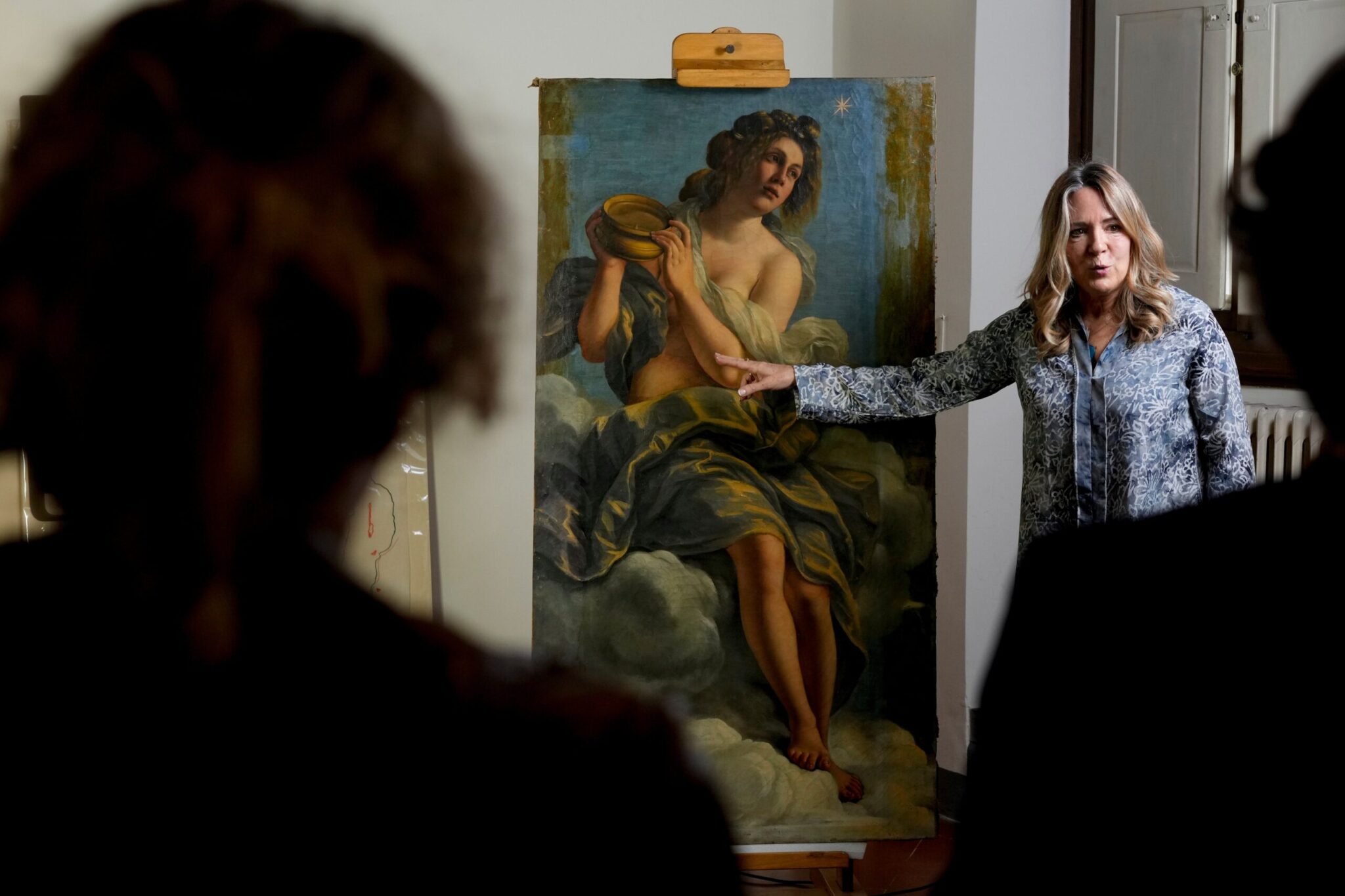 Συντηρητές έργων τέχνης στη Φλωρεντία εργάζονται για την αποκατάσταση ενός διάσημου έργου του 17ου αιώνα, που απεικονίζει σε φυσικό μέγεθος μία γυμνή γυναίκα στα σύννεφα. Το έργο έχει υποστεί επεξεργασία, ώστε να καλυφθεί το γυμνό στήθος με πέπλο.