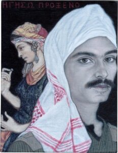 Στην έκθεση ξεχωρίζει η πραγματική ιστορία του Ευάγγελου Χατζηευαγγέλου. Τον ρωτάμε για την επιλογή αυτού του προσώπου: «Ο χαμός (δεύτερος χαμός στη συζήτησή μας) του Χατζηευαγγέλου βαραίνει σαν την κατάρα που ερήμωσε το χωριό Εμπορειός της Νισύρου. Στην είσοδο ακριβώς του χωριού είναι το καφενείο που σκοτώθηκε το 1945 σε μία μάχη με τους Γερμανούς. Τα περισσότερα παραπέρα σπίτια είναι ερειπωμένα και κρέμονται στο χείλος του ηφαιστείου. Μέσα στο καφενείο κρέμεται και ο σπασμένος από τις μοιραίες σφαίρες καθρέφτης… Τι και αν δεν υπάρχουν κατάρες ή γρουσουζιά από τον σπασμένο καθρέφτη! Κοντά σε αυτά, η παράκαμψη της λεγόμενης περιφέρειας από την μεταπολεμική ανάπτυξη της χώρας ερήμωσε το χωριό και συρρίκνωσε ασφυχτικά τον πληθυσμό ενός από τα ωραιότερα νησιά της Ελλάδας»