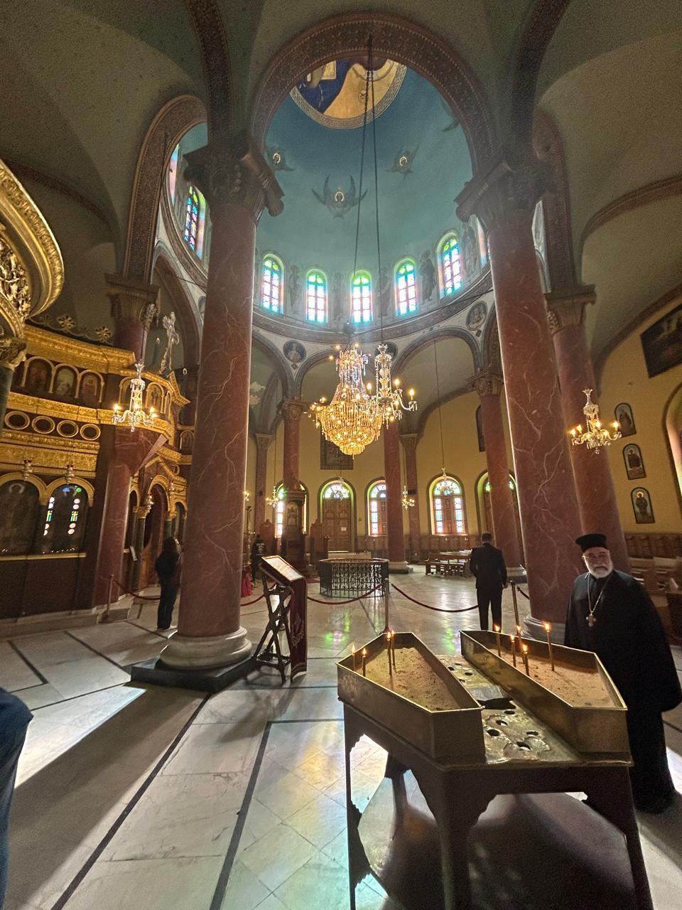 Η Λίνα Μενδώνη επισκέφθηκε την Ιερά Μονή Αγίου Γεωργίου στο Παλαιό Κάιρο, η οποία ανήκει στο Πατριαρχείο Αλεξανδρείας και ξεναγήθηκε από τον πανοσιολογιώτατο π. Κωνσταντίνο. Οι αγιογραφίες, στο καθολικό του ναού, είναι έργα του Κωνσταντίνου Παρθένη.