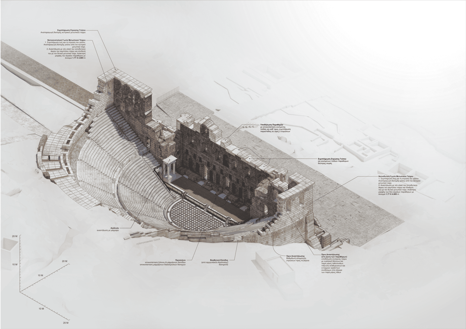 Η εκπόνηση διεπιστημονικών μελετών, για την προστασία και ανάδειξη του Ωδείου Ηρώδου Αττικού, στη νότια κλιτύ της Ακροπόλεως, ήταν το αντικείμενο του ερευνητικού προγράμματος, που ανατέθηκε από τη Διεύθυνση Αναστήλωσης Αρχαίων Μνημείων του Υπουργείου Πολιτισμού στο Εθνικό Μετσόβιο Πολυτεχνείο, τον Ιούλιο 2025. Στόχος του Υπουργείου Πολιτισμού είναι οι εργασίες ολικής αποκατάστασης του μνημειακού συνόλου του Ωδείου του Ηρώδου του Αττικού, καθώς και η αναβάθμιση των υποδομών λειτουργίας ώστε να είναι αρμονικά ενταγμένες στο φυσικό τοπίο και στο ευρύτερο δομημένο περιβάλλον.