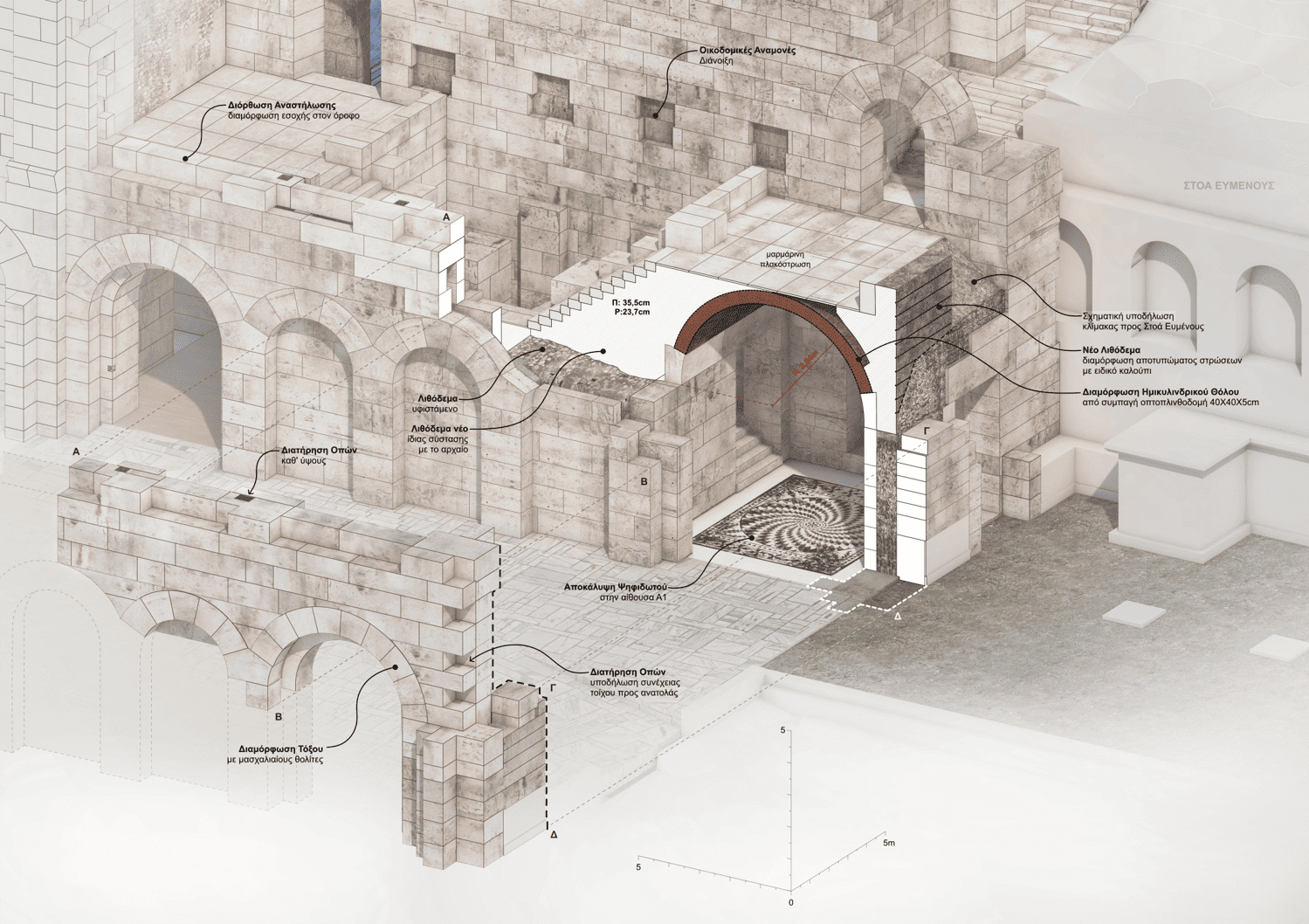 2. Στο Προσκήνιο, προκειμένου ο χώρος να καταστεί ασφαλής και επισκέψιμος, και η μορφή του να είναι σαφής, ευανάγνωστη και διδακτική.