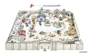 Αυτό που κυριαρχεί στον χώρο είναι αυτό που κάποτε ήταν το κάστρο της Σταχτοπούτας, το οποίο τώρα μοιάζει σαπισμένο και κατεστραμμένο.
