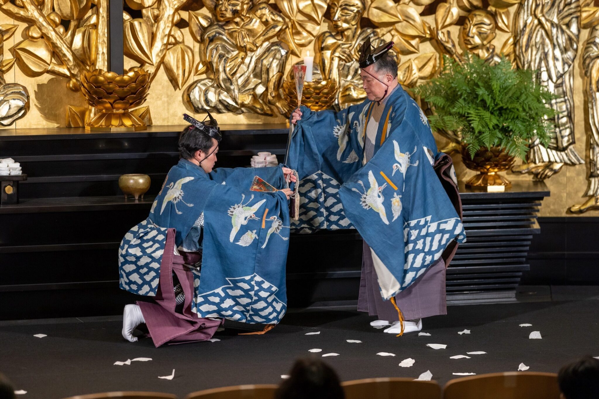 Στο δεύτερο μέρος της παράστασης, θα παρουσιαστεί μέρος του έργου Noh «Η πέτρινη γέφυρα» (Shakkyo).