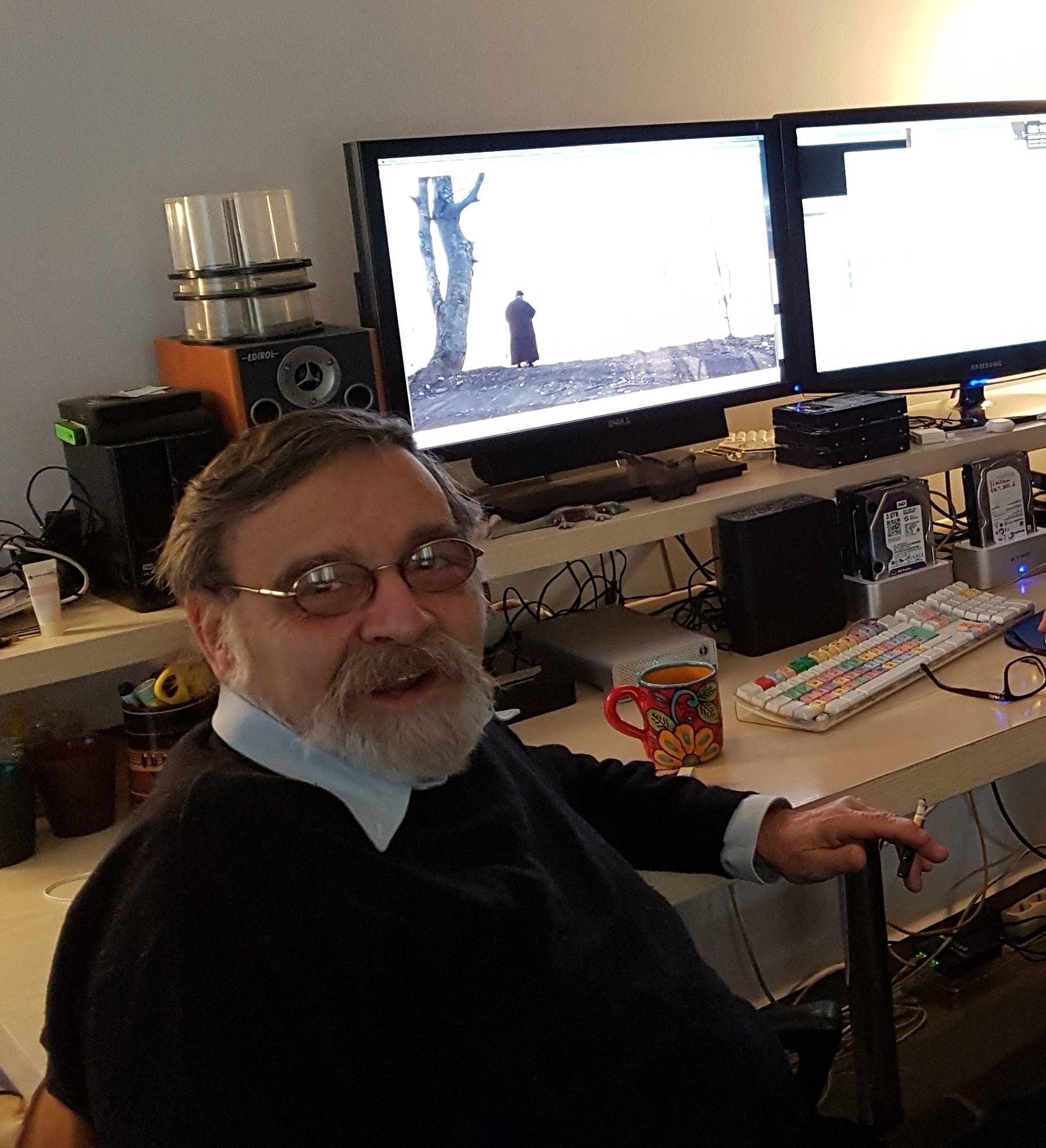Δεν είναι καθόλου αλήθεια πως εγκατέλειψα την χρήση της τεχνολογίας. Εξακολουθώ να γράφω έργα – και μάλιστα στο laptop και χρησιμοποιώντας το ειδικό πρόγραμμα Cubase – στα οποία τα synthesizers συμπράττουν εντελώς ισότιμα με τα υπόλοιπα όργανα της ορχήστρας. Πρώτα τα παίζω και τα «πλάθω» με τα χέρια μου και στη συνέχεια τα περνάω σε παρτιτούρα. Απλούστατα τέτοια έργα δεν είναι γνωστά στο ευρύτερο κοινό και μέχρι στιγμής δεν έχω αποφασίσει αν θα με ενδιέφερε να τα κοινοποιήσω μέσω του YouTube. Πολύ συχνά όμως τα μοιράζω υπό μορφή CD σε φίλους όπως παλιά οι ποιητές κοινοποιούσαν τα έργα τους σε φωτοτυπίες!