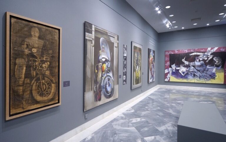 Με το που τελειώνει η δικτατορία, ο θυμός του δεν έχει περάσει, και θα παρουσιάσει πολλά θέματα απαισιόδοξα. Τότε, αρχίζει να απομονώνεται περισσότερο, γίνεται πιο εσωτερικός. Κι ο θυμός του θα βγει μέσα από θέματα όπως οι γνωστές του μοτοσυκλέτες. Μετά, είναι τα αλλοτριωμένα τοπία, όπου βλέπουμε δρόμους μέσα σε μια φύση που έχει αλλάξει τελείως, πολύ μακριά πλέον από τη γενέτειρά του, τη Χαλκίδα. Και βέβαια, εκφράζεται με τα σκυλιά, που θα τον απασχολήσουν για πολύ καιρό. Ενώ τα λάτρευε τα ζώα, αυτά είναι σκυλιά έτοιμα να δαγκώσουν, να επιτεθούν…»