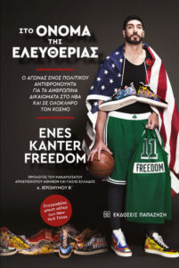 Στο «In the Name of Freedom», που έχει ήδη γίνει μπεστ σέλερ στις ΗΠΑ, ο σταρ του NBA, Enes Kanter Freedom αφηγείται την ιστορία του: Πώς ο Ενές Καντέρ, ένα αγόρι με ένα όνειρο στην Τουρκία, έγινε ο Ενές Φρίντομ, Αμερικανός πολίτης και δυναμικός υπερασπιστής των ανθρωπίνων δικαιωμάτων. Ο Ενές έφτασε στις Ηνωμένες Πολιτείες πεπεισμένος ότι η Αμερική ήταν μια κακή χώρα. Αυτό του είχαν διδάξει σε όλη του τη ζωή. Έμεινε άναυδος όταν ανακάλυψε ότι οι Αμερικανοί ήταν αξιοπρεπείς άνθρωποι – ανεκτικοί, καλοί και με σεβασμό. Όμως σοκαρίστηκε και από κάτι που δεν είχε ξαναζήσει ποτέ: την ελευθερία. Ο Ενές αρνήθηκε να παραμείνει σιωπηλός παρακολουθώντας τι συνέβαινε στην πατρίδα του και μίλησε ανοιχτά για την αντιμετώπιση των αντιφρονούντων. Τα υπόλοιπα είναι γνωστά: Το καθεστώς Ερντογάν τον κήρυξε εχθρό του κράτους. Ο πατέρας του, που παρέμεινε στην Τουρκία, συνελήφθη και χαρακτηρίστηκε τρομοκράτης. Το τουρκικό διαβατήριο του Ενές ανακλήθηκε και έμεινε χωρίς ιθαγένεια. Η εμπειρία αυτή θα είχε λυγίσει τους περισσότερους ακτιβιστές. Όμως ενθάρρυνε ακόμη περισσότερο τον Ενές, ο οποίος συνειδητοποίησε ότι ο αγώνας για τα ανθρώπινα δικαιώματα ήταν πιο σημαντικός από το μπάσκετ. Τον πρόλογο υπογράφει ο Αρχιεπίσκοπος Αθηνών και Πάσης Ελλάδος Ιερωνύμος Β΄.