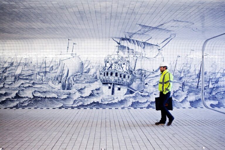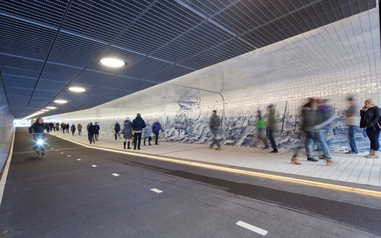 Η αρχιτεκτονική φίρμα Benthem Crouwel παρέδωσε πρόσφατα στην πόλη του Άμστερνταμ μια νέα σήραγγα για πεζούς και ποδηλάτες, η οποία πέρα από το πρακτικό κομμάτι της υπόθεσης λειτουργεί και ως ένας οπτικός θησαυρός για τους περαστικούς, ένα έργο τέχνης-δώρο στο αστικό τοπίο. Ολόκληρο το εσωτερικό της σήραγγας είναι στολισμένο με πλακάκια που απεικονίζουν ένα στόλο από φρεγάτες να δίνει μάχη με τα κύματα μιας αγριεμένης θάλασσας.