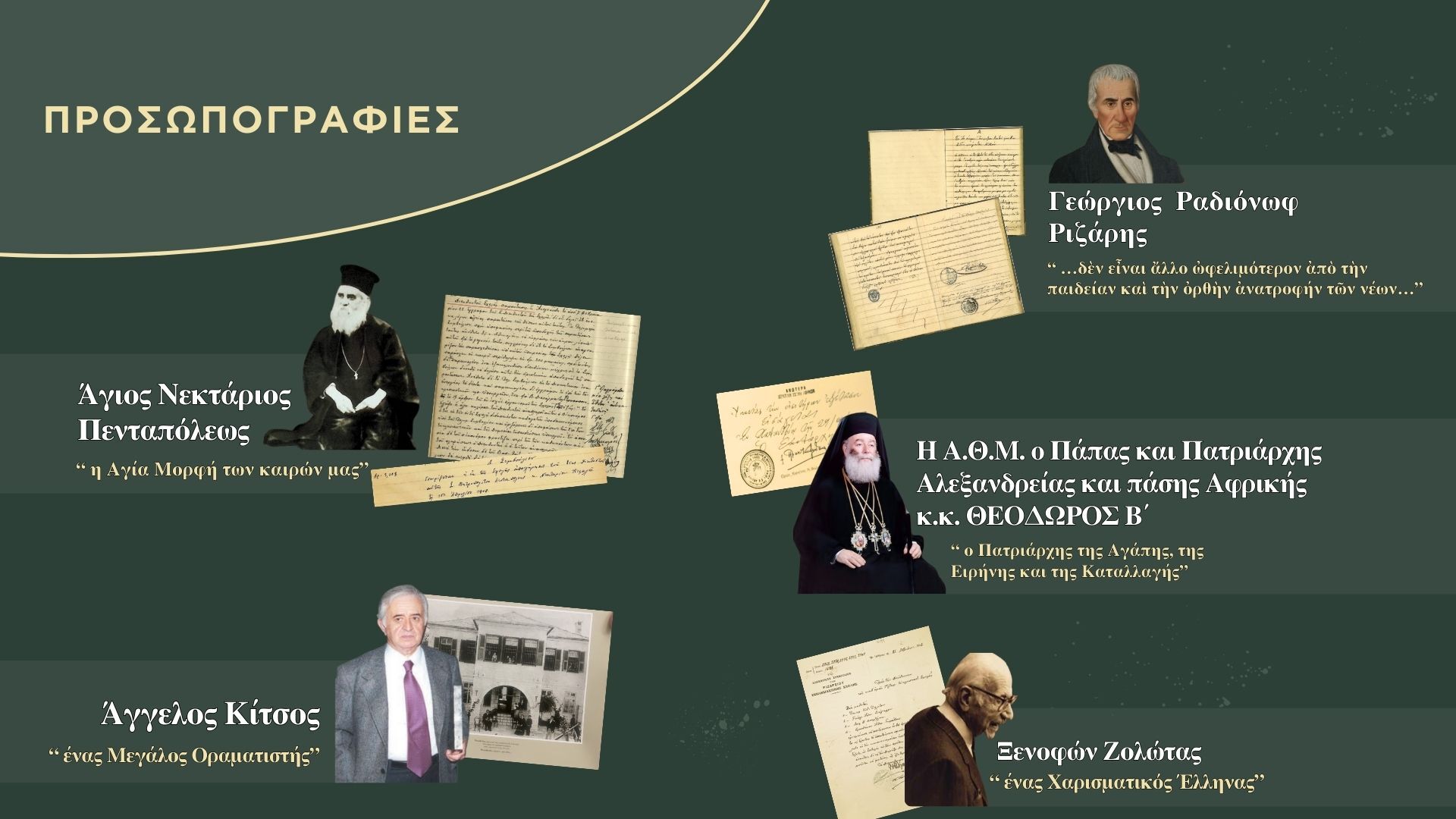 Παράλληλα, οι επισκέπτες θα μπορούν να ανακαλύψουν προσωπικότητες που συνυφαίνουν με τον βίο και την προσφορά τους την ίδια την ιστορία του Ιδρύματος από το 1844 έως και σήμερα.
