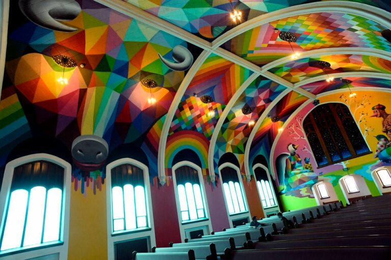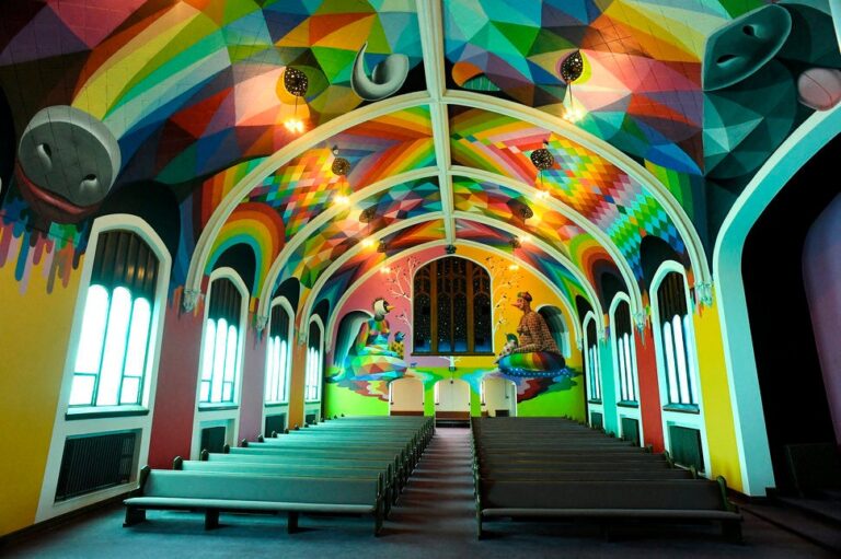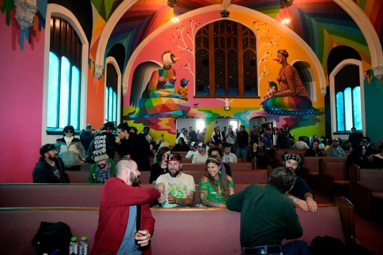 Η International Church of Cannabis (Διεθνής Εκκλησία Κάνναβης) άνοιξε επισήμως τις πύλες της την περασμένη Πέμπτη, έχοντας προηγουμένως καταφέρει να υπερπηδήσει δεκάδες νομικά εμπόδια και να διαχειριστεί το σούσουρο που έγινε στα ΜΜΕ. Βαμμένη στα ζωηρά, φωτεινά χρώματα του ουράνιου τόξου από τον Ισπανό καλλιτέχνη Okuda San Miguel και τον Αμερικανό καλλιτέχνη Kenny Scharf, η εκκλησία είναι ένα μοναδικό κτίσμα που αξίζει την προσοχή μας.