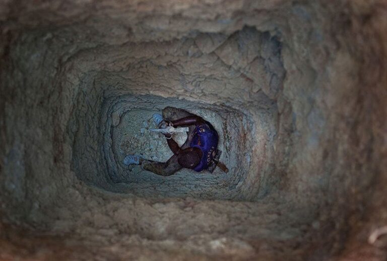 Ορισμένα ορυχεία στην περιοχή του GorkaJi βρίσκονται σε βάθος 70 μέτρων. Πήγα σε ένα που είχε βάθος 62 μέτρα και είδα πέντε αγόρια σιωπηλά να σπάνε το βράχο ξαπλωμένα μέσα στο νερό. Το έκαναν για 11 ώρες και στη συνέχεια ήρθε μια άλλη ομάδα παιδιών.