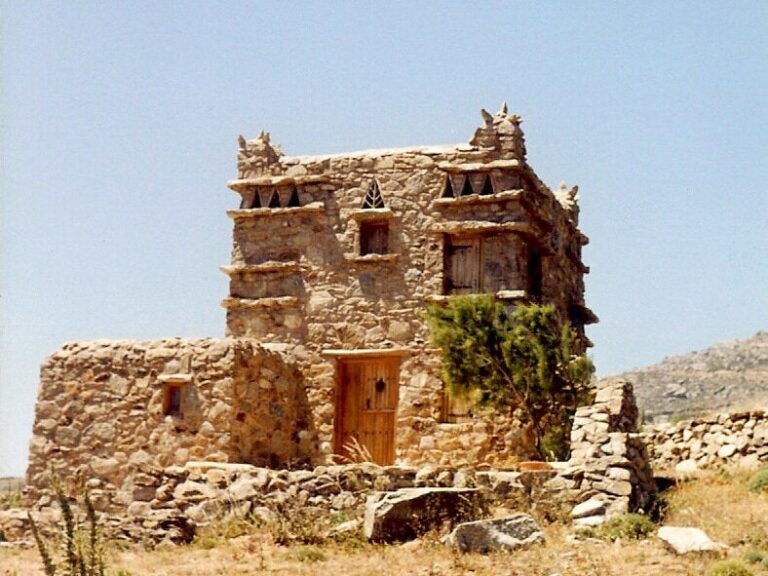 Ο ήλιος κι ο αέρας όμως μπορεί να είναι τραχείς. Μικρά προστατευμένα κελιά με αξιοποίηση των γύρω άυλων ανταποκρίνονται ιδανικά στις συνθήκες. Η ανάγκη για ένα μικρό ξενώνα, προσθήκη στην πλάγια μιας εξοχικής κατοικίας στη Μύκονο, εμπνευσμένης από το τοπικό αρχιτεκτονικό ιδίωμα, οδήγησε στην ιδέα του περιστερώνα.