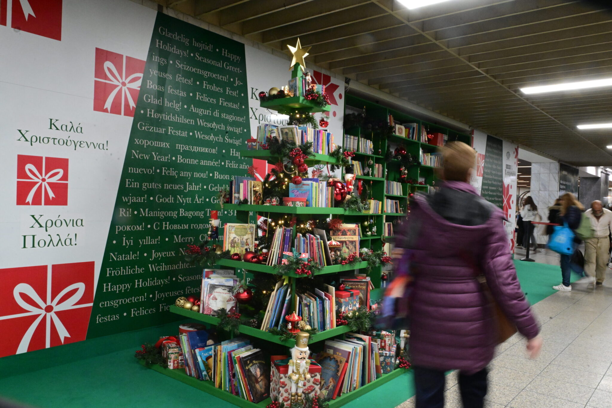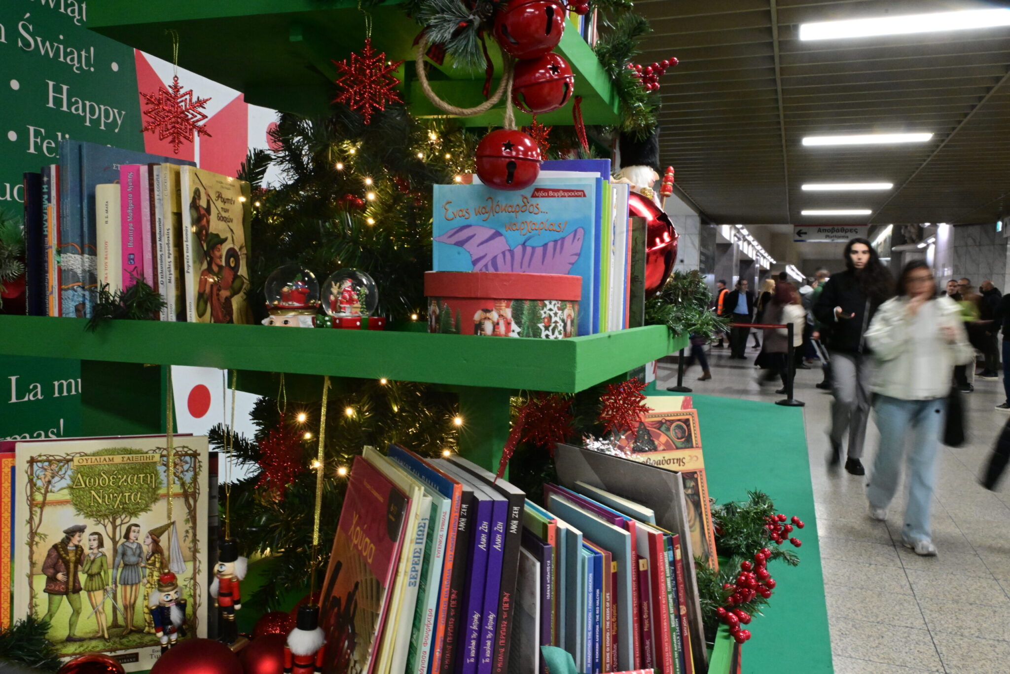 Ένα χριστουγεννιάτικο δέντρο, διαφορετικό από τα συνηθισμένα, στολισμένο με βιβλία και μία δανειστική βιβλιοθήκη σε ένα σημείο απρόσμενο στο κέντρο της Αθήνας, «μεταφέρουν» αυτές τις γιορτές τους επιβάτες του μετρό στον συναρπαστικό κόσμο του βιβλίου.