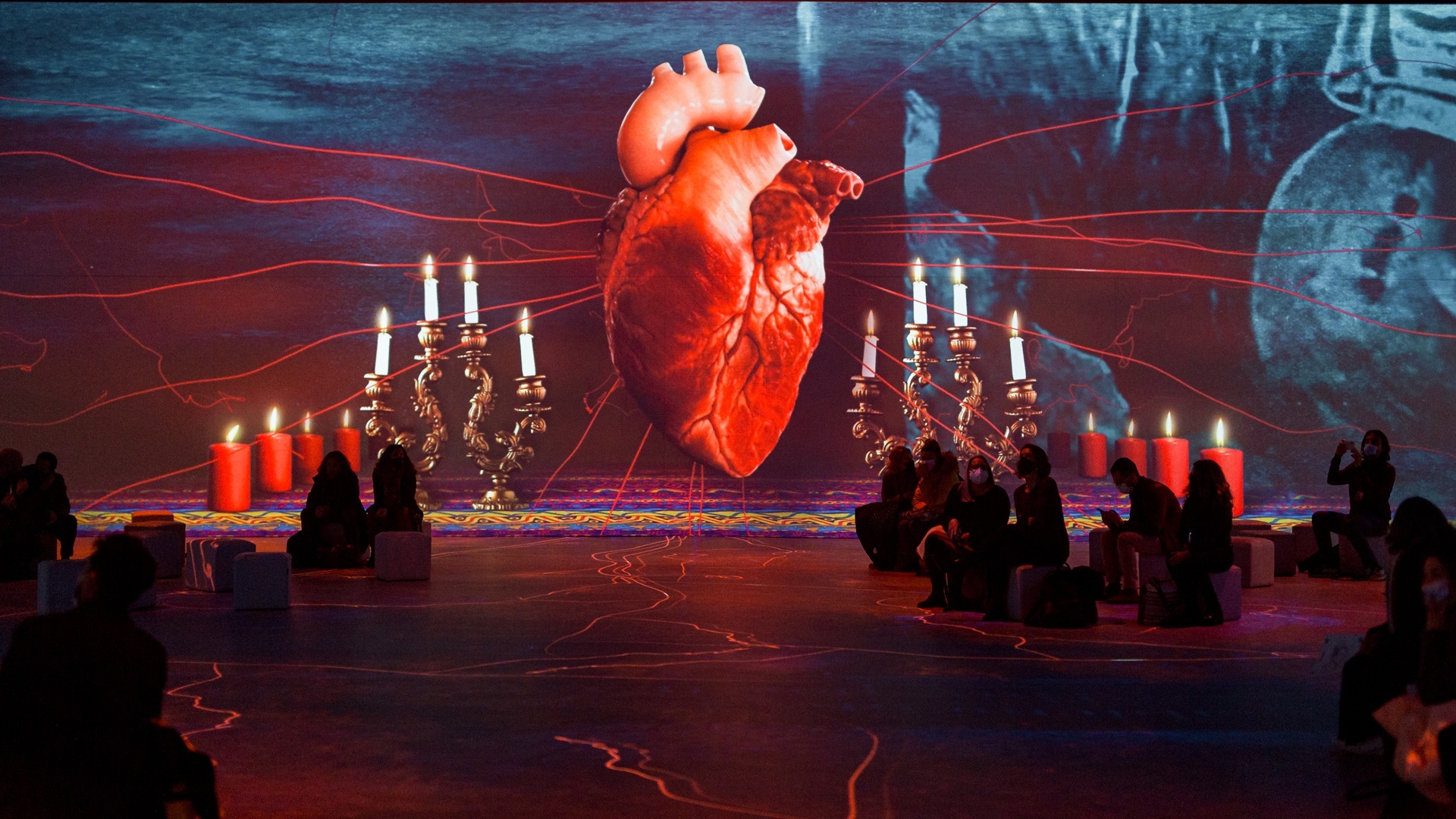 Αίθουσα Εμβύθισης/IMMERSIVE EXPERIENCE: Η θεαματική οπτικοακουστική αφήγηση παρουσιάζει τα γεγονότα και τις εμπειρίες που ανέδειξαν τη μοναδική ζωή της Φρίντα Κάλο και συνέβαλαν στη διαμόρφωσή της ως παγκόσμιου πολιτιστικού συμβόλου, μέσα από προβολές συνολικής επιφάνειας 500 τ.μ. με τη συνοδεία της μαγικής μουσικής του Ραφέλ Πλάνα (περιλαμβάνονται φωτογραφικό αρχειακό υλικό, ιστορικά ντοκουμέντα και απεικονίσεις χώρων που σημάδεψαν την προσωπική και ιστορική της διαδρομή).