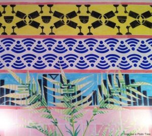 Πάνω απ’ όλα όμως δημιουργείται ο χώρος όπου τα ζωγραφιστά φοινικόδεντρα στέκονται μακριά από το καταστροφικό κόκκινο σκαθάρι που κατατρώει χιλιάδες από τα «αδέρφια» του στην πόλη. Δεν θα είναι πια ένα σύμβολο της υπερβολικής δαπάνης των Ολυμπιακών Αγώνων του 2004 (όταν η εισαγωγή πολλών δέντρων, ως δείγμα πολυτέλειας αλλά και για την προστασίας από τον ήλιο, έφερε και το κόκκινο σκαθάρι). Δεν θα ξεριζωθούν στα πλαίσια των εργασιών του σιδηροδρόμου της Αθήνας (όπως έγινε στην πλατεία Ομονοίας το 1927) ούτε να μαδηθούν για να χρησιμοποιούνται τα φύλλα τους στις τοπικές εορτές. Τα δέντρα δεν θα είναι πλέον το σύμβολο ούτε της Δύσης ούτε της Ανατολής. Στο έργο θα αναδεικνύεται μια άλλη διάσταση της παράστασης όπως τη δυτική διακοσμητική τέχνη (όπως αυτή εκφράζεται μέσα από τον Thomas Hope και τον Owen Jones) ή την Ισλαμική αρχιτεκτονική (το πρώτο τζαμί στη Μεδίνα στηριζόταν σε κορμούς από φοίνικες) αλλά και την πιο πρόσφατη, την ύπαρξή της στη σύγχρονη ζωή στην πόλη.