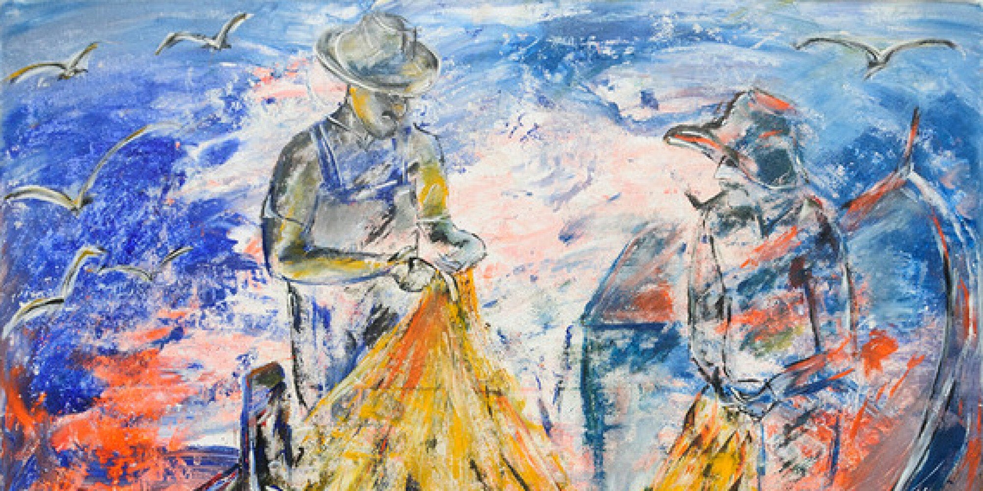 Παραστάσεις στο φως και στα χρώματα καθημερινών ανθρώπων που γίνονται πρωταγωνιστές στον καμβά, εικόνες αυθεντικές, αληθινές, σε πλήρη αρμονία με τη φύση, την ελληνική γη και τη μεσογειακή ιδιοσυγκρασία. Ψαράδες που ψαρεύουν κάτω από το φως του φεγγαριού, βάρκες μοναχικές σε γαλανά νερά, το ηλιοβασίλεμα που υπόσχεται μια ακόμα ηλιόλουστη μέρα γεμάτη φως, ανεμόμυλοι που στέκονται αγέρωχοι ενάντια στον χρόνο και τον άνεμο…