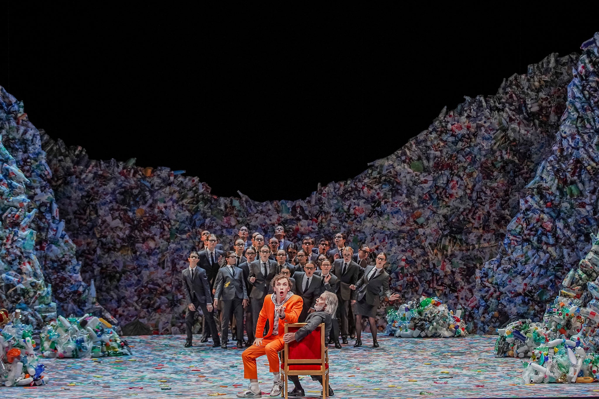 Σε μια τεράστια παιδική χαρά συναντιούνται οι κάτοικοι της Γης και της Σελήνης, όπου παιδιά ντυμένα με κοστούμια των «μεγάλων» ερμηνεύουν βασιλείς, λαϊκούς ανθρώπους, αστρονόμους, πρίγκιπες και υπουργούς, ενώ παράλληλα στη σκηνή ανεβαίνουν τα παιδιά που κάνουν διαδήλωση για το κλίμα και τη Γη που πνίγεται στις ανοιχτές χωματερές.