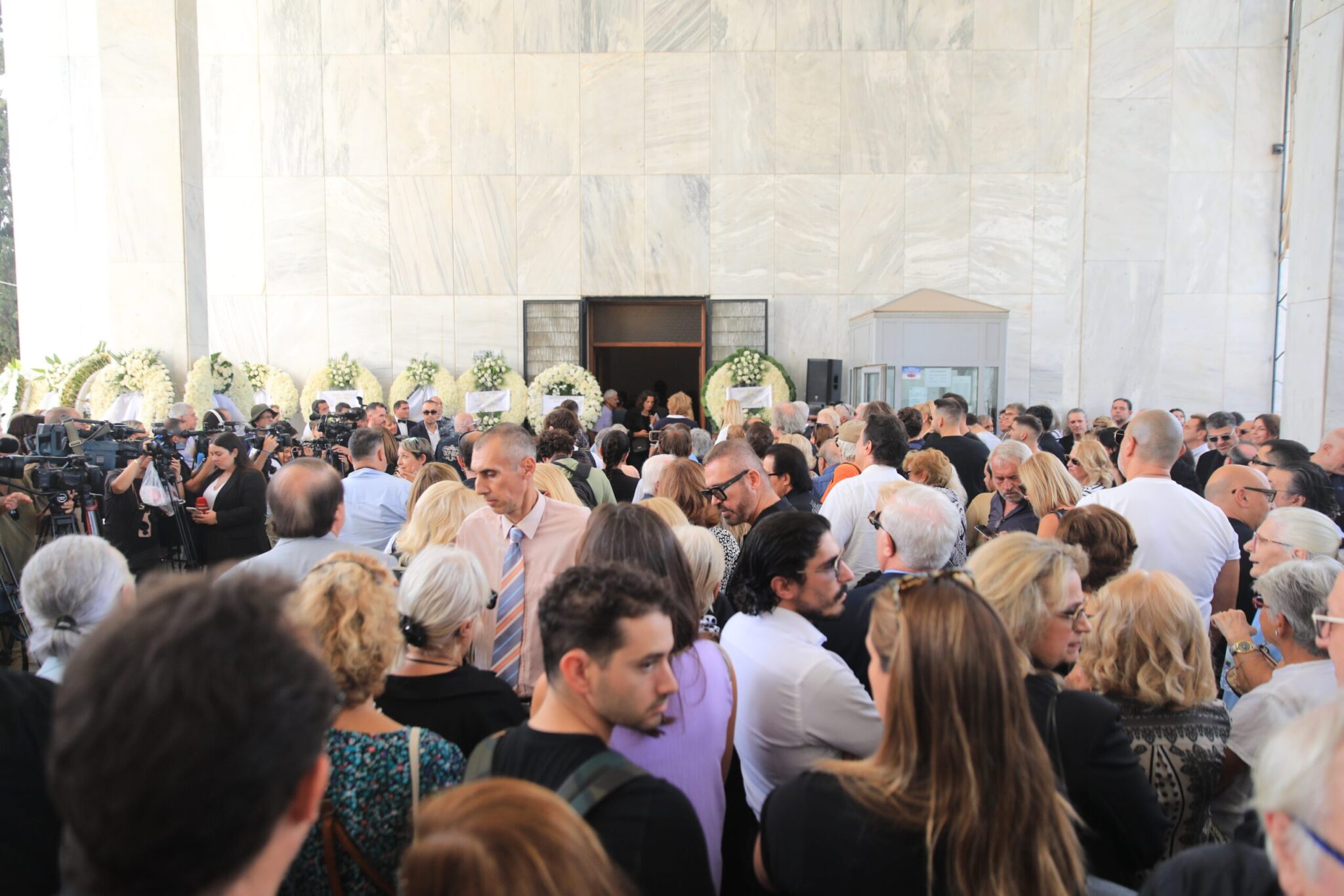 Η σύζυγος του Λουκίλα έφτασε εμφανώς συγκινημένη με την κόρη τους Ελεάννα, όπως και ο γιος του συνθέτη από τον πρώτο του γάμο, Αντώνης, ενώ κοντά τους ήταν από την πρώτη στιγμή ο ανιψιός του Μίμη Πλέσσα, Στέφανος Κορκολής.