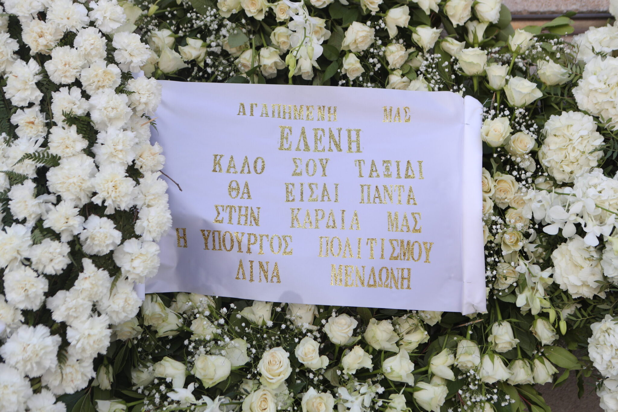 Δύο λέξεις συνόδευσαν το στεφάνι του Κυριάκου Μητσοτάκη και της συζύγου του Μαρέβας Γκραμπόφσκι, στη μνήμη της Ελένης Γλύκατζη – Αρβελέρ: «Με ευγνωμοσύνη».