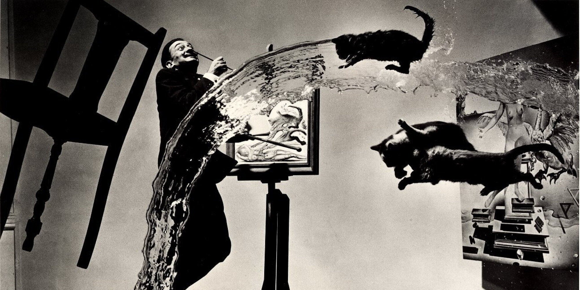 www.temple.edu/photo/photographers/halsman/phbio.html and i fully reccomend looking at some more of his work – his collaborations with Salvador Dali were some of the most innovative work around.And something to note – you could do this in photoshop now easily but Halsman did not – this was shot live. It took 26 tries to get it over five hours – Halsman counted to four, Dali leapt, 3 assistants threw the cats, one threw the water from a bucket and Halsman’s wife held the chair. Its all done in the camera.Note that I in no way claim creation, copyright, ownership or control of this image in any way. It was taken from a public domain site where it is presented as a wallpaper image and will be taken down if requested.” data-caption=”When i commented on someones photograph looking like Halsman’s Atomicus I got asked what that was.I was a bit amazed, Im surrounded by books about photography and assumed others loved them as well, it appears a lot of people havent seen them.So here is Dali Atomicus by Philippe Halsman. You can find out more about Halsman here : www.temple.edu/photo/photographers/halsman/phbio.html and i fully reccomend looking at some more of his work – his collaborations with Salvador Dali were some of the most innovative work around.And something to note – you could do this in photoshop now easily but Halsman did not – this was shot live. It took 26 tries to get it over five hours – Halsman counted to four, Dali leapt, 3 assistants threw the cats, one threw the water from a bucket and Halsman’s wife held the chair. Its all done in the camera.Note that I in no way claim creation, copyright, ownership or control of this image in any way. It was taken from a public domain site where it is presented as a wallpaper image and will be taken down if requested.” data-credit=”monkeyc.net/Flickr”>