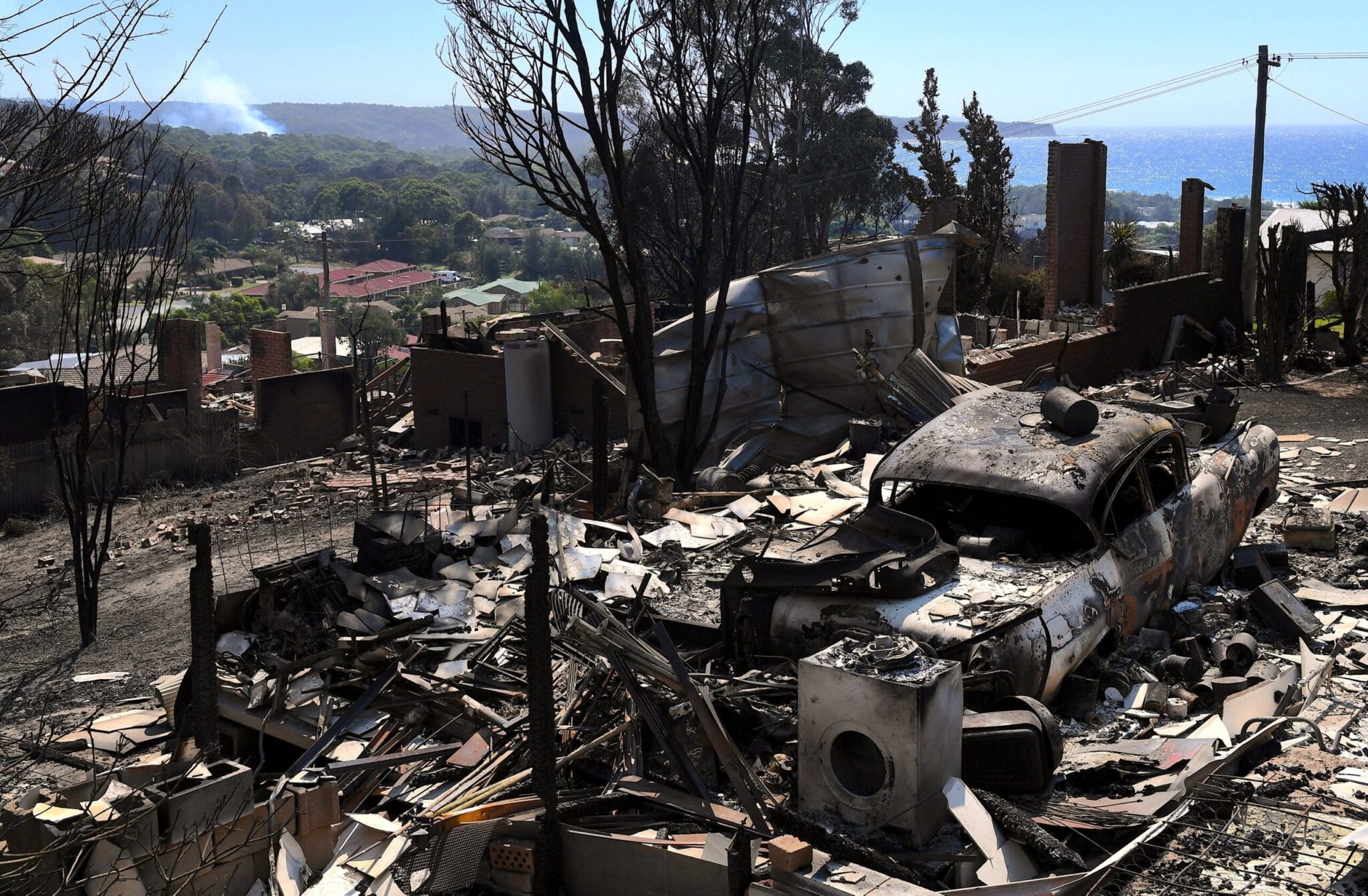Μια ειδυλλιακή παραθαλάσσια πόλη στις νοτιοανατολικές ακτές της Αυστραλίας υπέστη τεράστιες καταστροφές όταν πυρκαγιά σάρωσε δεκάδες κατοικίες και επιχειρήσεις.