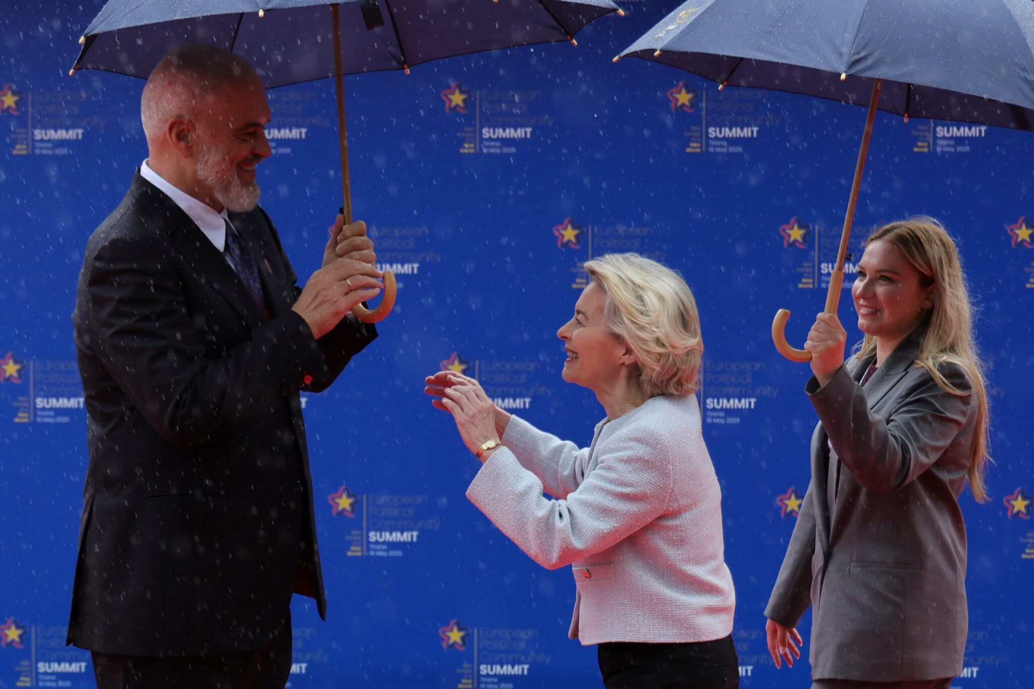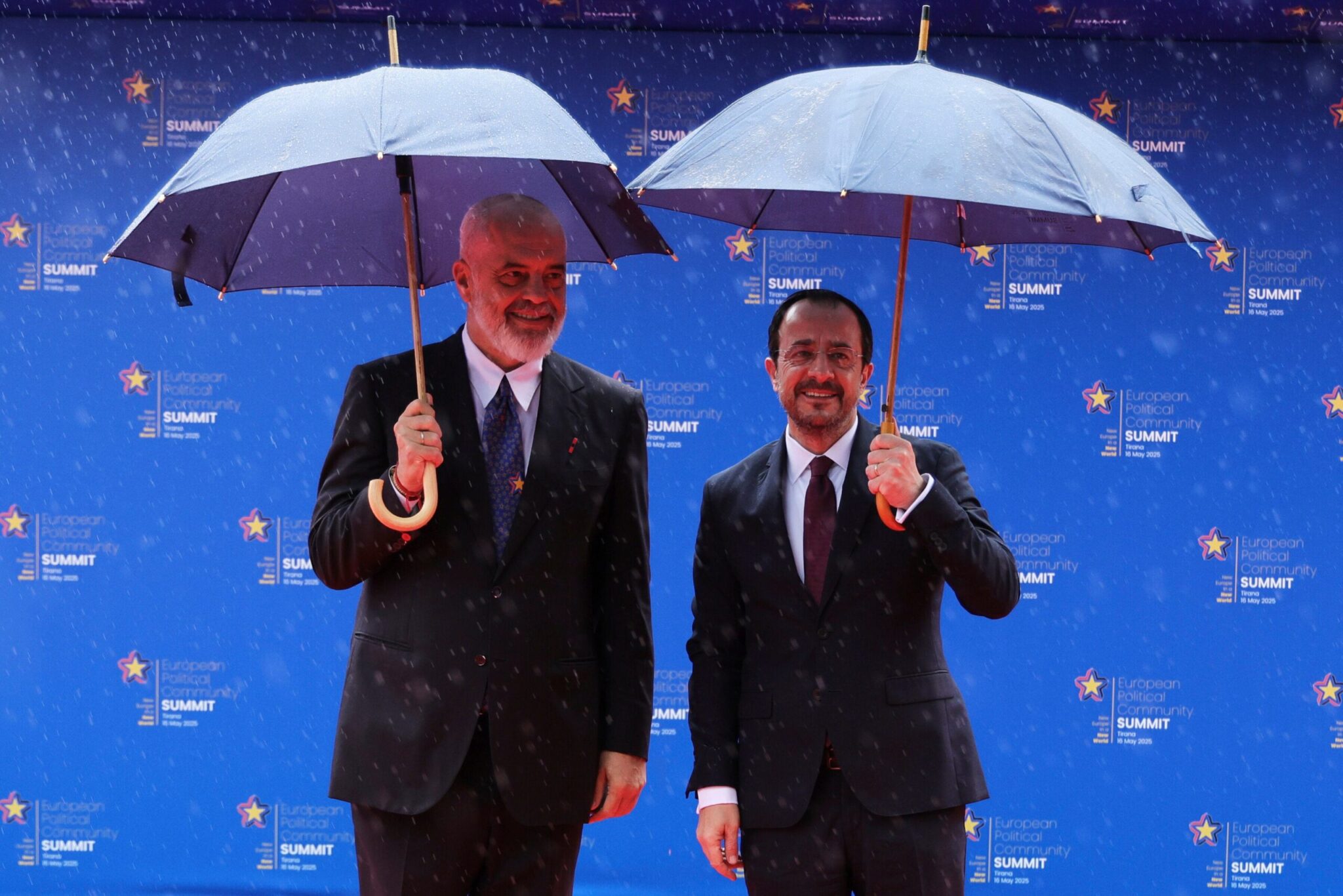Ο πρωθυπουργός της Αλβανίας Έντι Ράμα, αριστερά, ποζάρει με τον πρόεδρο της Κύπρου Νίκο Χριστοδουλίδη πριν από τη σύνοδο κορυφής όπου οι ηγέτες 47 ευρωπαϊκών χωρών και οργανισμών θα συζητήσουν για την ασφάλεια, την άμυνα και τα δημοκρατικά πρότυπα με φόντο τον πόλεμο της Ρωσίας στην Ουκρανία, στα Τίρανα της Αλβανίας, Παρασκευή 16 Μαΐου 2025. (AP Photo/Vlasov Sulaj)via Associated PressΟ πρωθυπουργός της Αλβανίας Έντι Ράμα, αριστερά, υποδέχεται την πρόεδρο της Ευρωπαϊκής Επιτροπής Ούρσουλα φον ντερ Λάιεν, στο κέντρο, πριν από τη σύνοδο κορυφής όπου οι ηγέτες 47 ευρωπαϊκών χωρών και οργανισμών θα συζητήσουν για την ασφάλεια, την άμυνα και τα δημοκρατικά πρότυπα με φόντο τον πόλεμο της Ρωσίας στην Ουκρανία, στα Τίρανα της Αλβανίας, Παρασκευή 16 Μαΐου 2025. (AP Photo/Vlasov Sulaj)via Associated Press