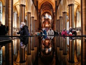 Κόσμος στέκεται στην ουρά προκειμένου να εμβολιαστεί στον καθεδρικό ναό του Σόλσμπερι. Paul Childs/Reuters