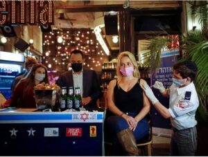 Με πρωτοβουλία του Δήμου Τελ Αβίβ, οι κάτοικοι μετά τον εμβολιασμό δικαιούνται δωρεάν ποτό στο μπαρ. Corinna Kern/Reuters