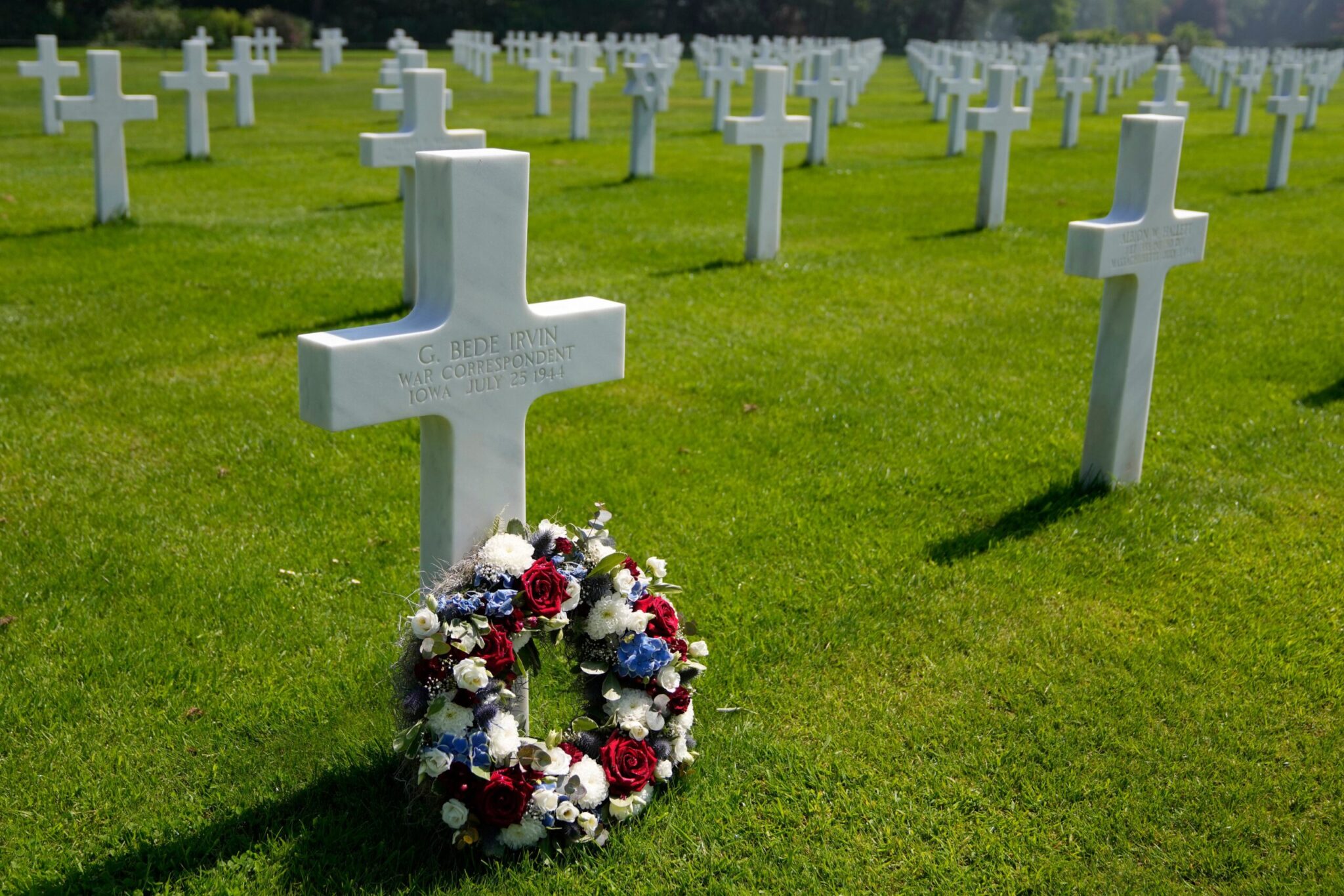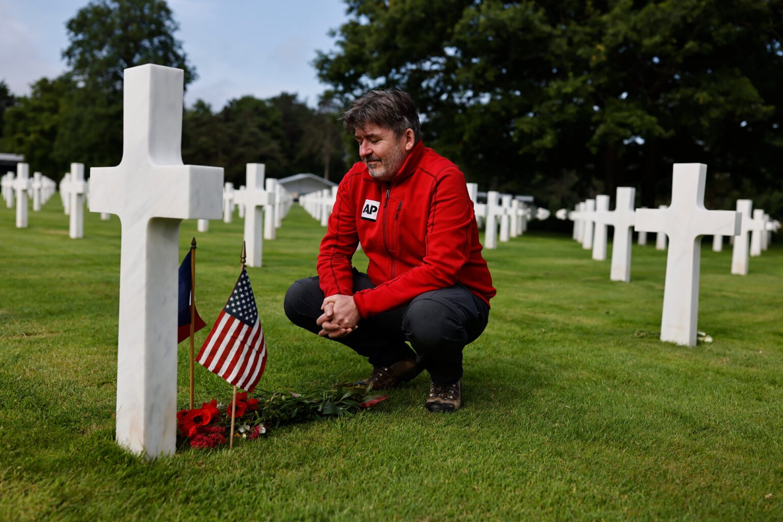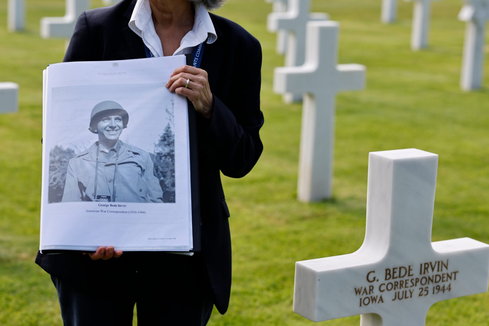 Μεταφέροντας πλήρη εξοπλισμό, αμερικανικά στρατεύματα επίθεσης κινούνται σε μια παραλία με την κωδική ονομασία Omaha Beach (Παραλία Ομαχα), στη βόρεια ακτή της Γαλλίας στις 6 Ιουνίου 1944, κατά τη διάρκεια της εισβολής των Συμμάχων στην ακτή της Νορμανδίας. Η μεγαλύτερη αρμάδα που συγκεντρώθηκε ποτέ, σχεδόν 7.000 πλοία και βάρκες, υποστηριζόμενες από περισσότερα από 11.000 αεροπλάνα, μετέφεραν σχεδόν 133.000 στρατιώτες στη Μάγχη για να δημιουργήσουν βάσεις σε πέντε παραλίες που σε έκταση 80χλμ της ακτής της Νορμανδίας. Περισσότεροι από 9.000 στρατιώτες των Συμμάχων σκοτώθηκαν ή τραυματίστηκαν τις πρώτες 24 ώρες.Γραφικό του Χάουελ Ντοντ που εμφανίστηκε στο τεύχος Ιουνίου-Ιουλίου 1944 του The AP Inter-Office, ενός έντυπου και εικονογραφημένου περιοδικού που προσφέρθηκε στο προσωπικό του AP και σε εφημερίδες. Το γράφημα δείχνει απεικονίσεις των ανταποκριτών του AP την D-Day. Το 1945 το περιοδικό άλλαξε το όνομά του σε AP World.Ο πολεμικός ανταποκριτής του Associated Press, Γουές Γκάλαχερ (δεξιά) παρατηρεί ένα υποπολυβόλο Thompson που του δείχνει ο Ταγματάρχης Τ.Σ.Π. Άρμοστρονγ (κέντρο) διοικητής της Σχολής Καταδρομέων του Καναδικού Στρατού, 10 Ιουνίου 1942. Το πρωί της D-Day, στις 6 Ιουνίου 1944, το Associated Press είχε δημοσιογράφους, καλλιτέχνες και φωτογράφους στον αέρα, στα ταραγμένα νερά της Μάγχης, στο Λονδίνο και στα αγγλικά λιμάνια και αεροδρόμια αναχώρησης. Ο βετεράνος πολεμικός ανταποκριτής Γκάλεχερ διηύθυνε την ομάδα του AP από το αρχηγείο στο Πόρτσμουθ της Αγγλίας, του Ανώτατου Συμμαχικού Διοικητή Άιζενχάουερ.Αντίγραφο τηλεγραφήματος του ρεπόρτερ του Associated Press, Ρότζερ Γκριν που έφτασε στη Νέα Υόρκη στις 8 Ιουνίου 1944, δύο ημέρες αφότου προσγειώθηκε στην παραλίας της Νορμανδίας μαζί με τις βρετανικές δυνάμεις. Ο αξιωματικός συνοδείας του Γκριν, τραυματίστηκε και είδε τρεις άνδρες να σκοτώνονται καθώς προσγειώθηκε. Στη Νέα Υόρκη, ο συντάκτης Άλαν Τζ. Γκουλντ, σημείωσε με κόκκινη μελάνη πάνω στο τηλεγράφημα: "Πρώτα από την ομάδα μας στην παραλία".Ο στρατηγός των ΗΠΑ, Άιζενχάουερ Διοικητής των Συμμάχων, μιλά με Αμερικανούς αλεξιπτωτιστές σε μια άγνωστη τοποθεσία στην Αγγλία, 6 Ιουνίου 1944, πριν από τα σχέδια για συμμετοχή στην πρώτη επίθεση στην ακτή της Γαλλίας κατά την D-DayΕργαζόμενοι για το Associated Press της αποκαλούμενης News-Photo invasion team στις 4 Μαϊου 1944. Κάτω σειρά: Πίτερ Κάρολ, Ε.Κ. Μπάτλερ, Τζορτζ Μπέντε Ίρβιν και Τζακ Ράις. Επάνω σειρά: Μπάιρο Ρολλινς, Χάρι Χάρις, Έντουαρντ Γουόρθ, Χόρα Κορτ. Την D-Day, 6 Ιουνίου 1944, το Associated Press είχε δημοσιογράφους, καλλιτέχνες και φωτογράφους στον αέρα, στα ταραγμένα νερά της Μάγχης, στο Λονδίνο και στα αγγλικά λιμάνια και αεροδρόμια αναχώρησης για την κάλυψη της συμμαχικής επίθεσης στη Νορμανδία της Γαλλίας. (Φωτογραφία AP, Αρχείο)Ένα στεφάνι στον τάφο του φωτογράφου του Associated Press, Μπεντε Ιρφιν Αμερικανικό Νεκροταφείο της Νορμανδίας, Κολβίλ συρ - Μερ Σάββατο 11 Μαΐου 2024. Ο Ίρβιν σκοτώθηκε στις 25 Ιουλίου 1944 κοντά στην πόλη Σέιντ Λο καθώς φωτογράφιζε έναν συμμαχικό βομβαρδισμό.Ο φωτογράφος του Associated Press, Μπεντε Ιρφιν, αριστερά, μελετά έναν χάρτη της Ευρώπης με τον πιλότο βομβαρδιστικών A-20, Ταγματάρχη Α.Ρ Μίλοου και μέλος πληρώματος του μαχητικού, σε αεροπορική βάση στην Αγγλία, 24 Μαΐου 1944. Ο φωτογράφος του Associated Press σκοτώθηκε στις 25 Ιουλίου 1944 κοντά στην πόλη Σέιντ Λο καθώς φωτογράφιζε έναν συμμαχικό βομβαρδισμό.Ο ανταποκριτής του Associated Press, Ντον Γουάιτχεντ στις 8 Μαρτίου 1943. 