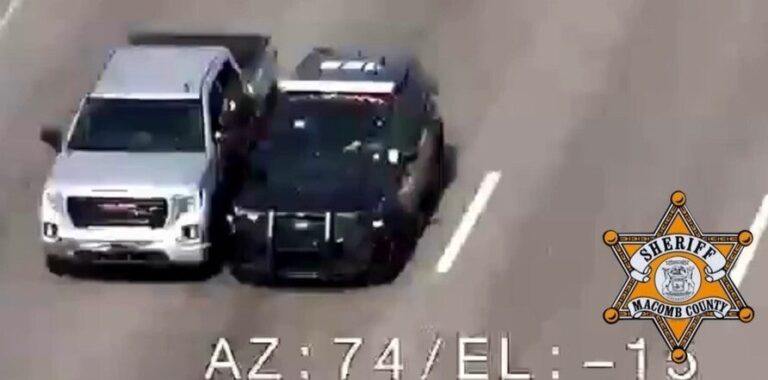 Οι κάμερες κυκλοφορίας κατέγραψαν τη στιγμή που ένας αξιωματικός από το Τμήμα Σερίφη της κομητείας Macomb στο Μίσιγκαν πήδηξε σε ένα κινούμενο όχημα για να βοηθήσει τον οδηγό.