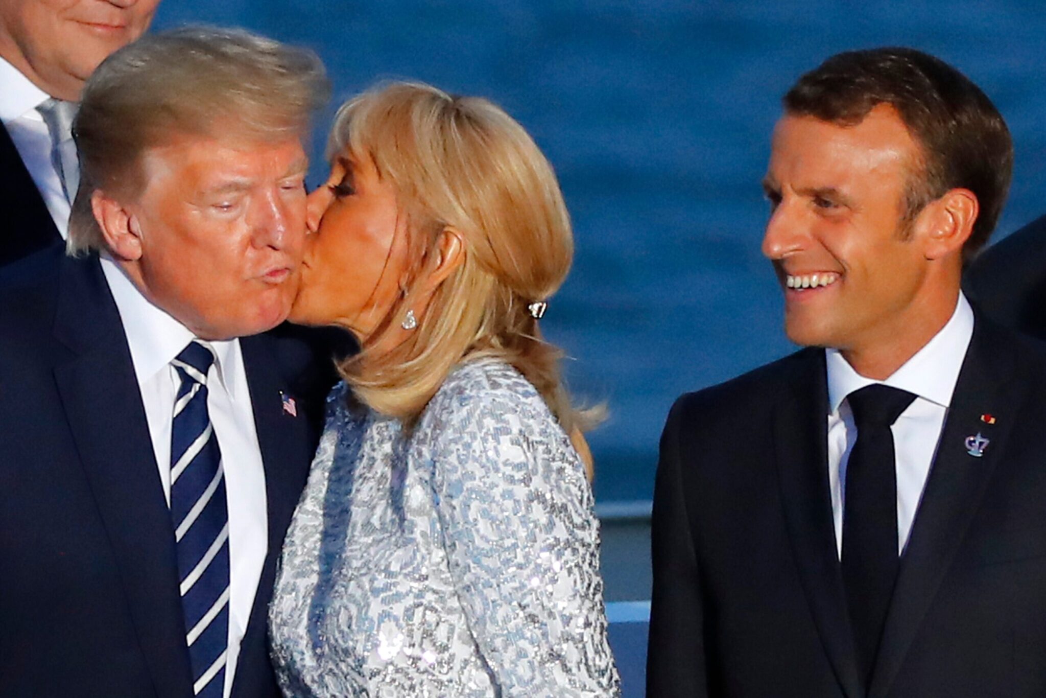 Ο πρόεδρος των ΗΠΑ φρόντισε να πάρει, πάντως, την «εκδίκησή» του, δίνοντας ένα ιδιαίτερα θερμό φιλί στην Μπριζίτ Μακρόν. Ο Γάλλος πρόεδρος, ωστόσο, δεν έδειξε να ανησυχεί. ASSOCIATED PRESS