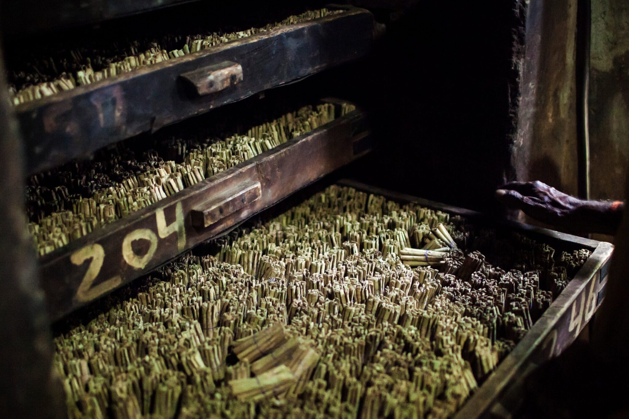 Αφού οι εργάτες στρίψουν τα τσιγάρα τα στοιβάζουν και τα ψήνουν για να φύγει η υγρασία και στη συνέχεια του προσθέτουν τις γεύσεις.