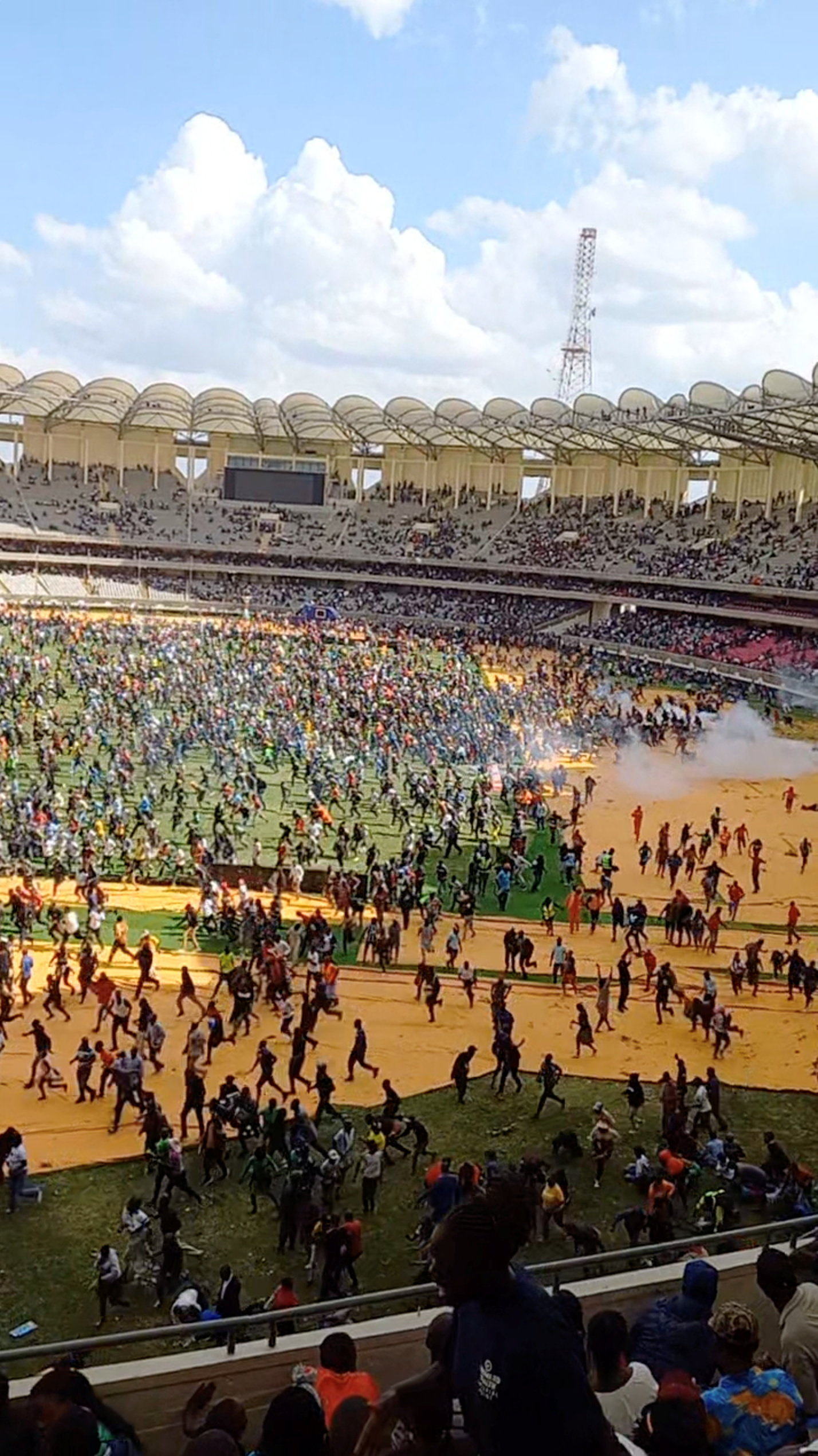 Λίγα λεπτά αργότερα, ένα μεγάλο πλήθος παραβίασε μια πύλη του σταδίου, αναγκάζοντας την αστυνομία να κάνει χρήση δακρυγόνων με αποτέλεσμα οι άνθρωποι πανικόβλητοι να αρχίοσυν να τρέχουν.