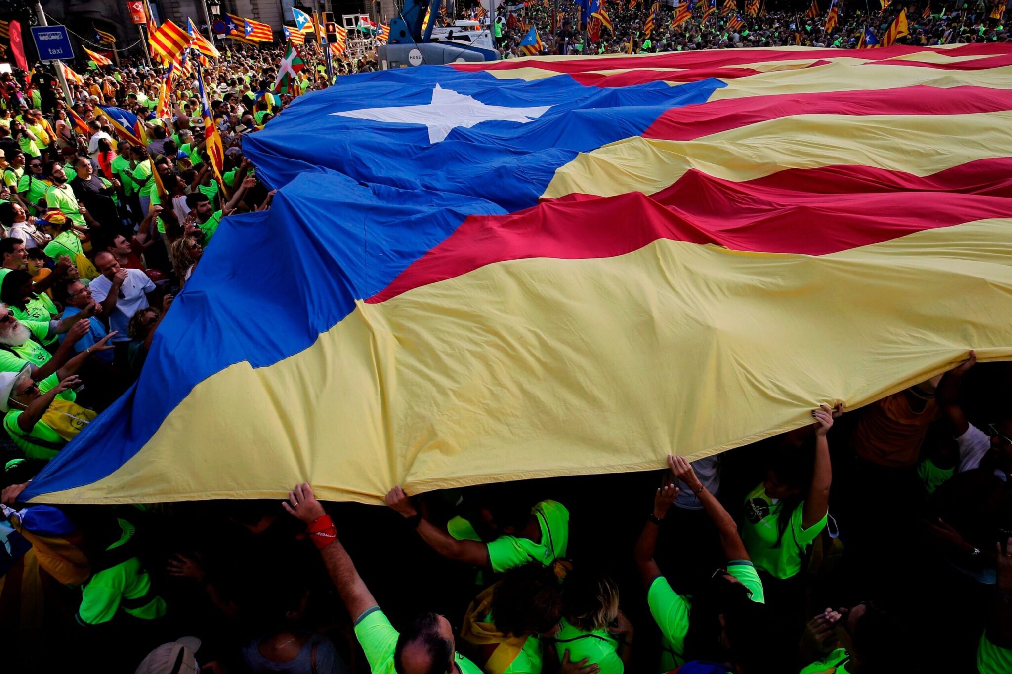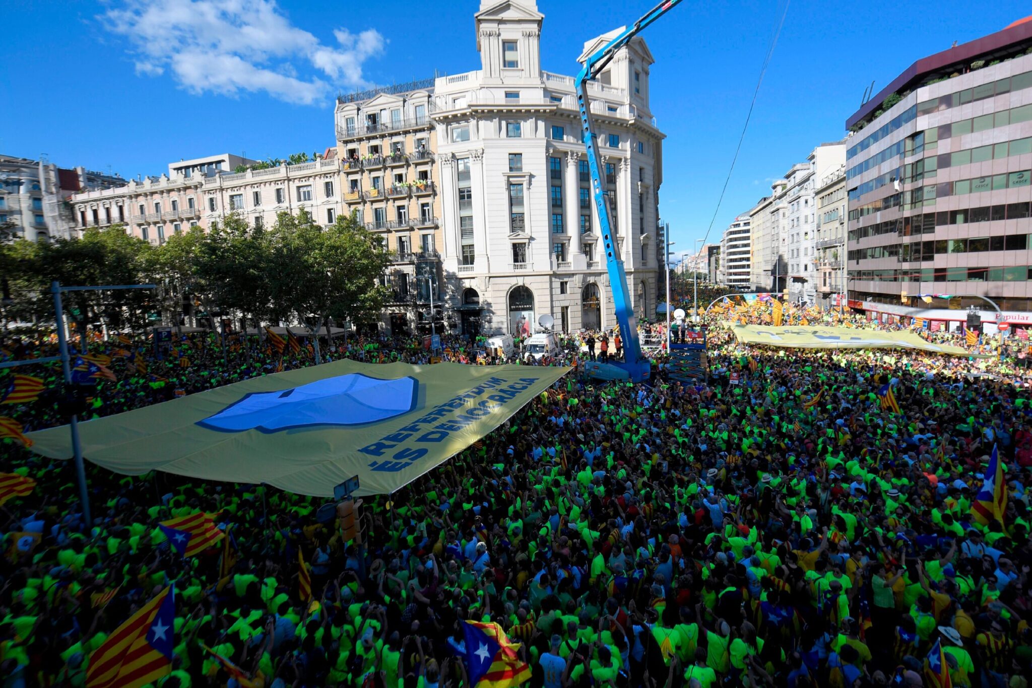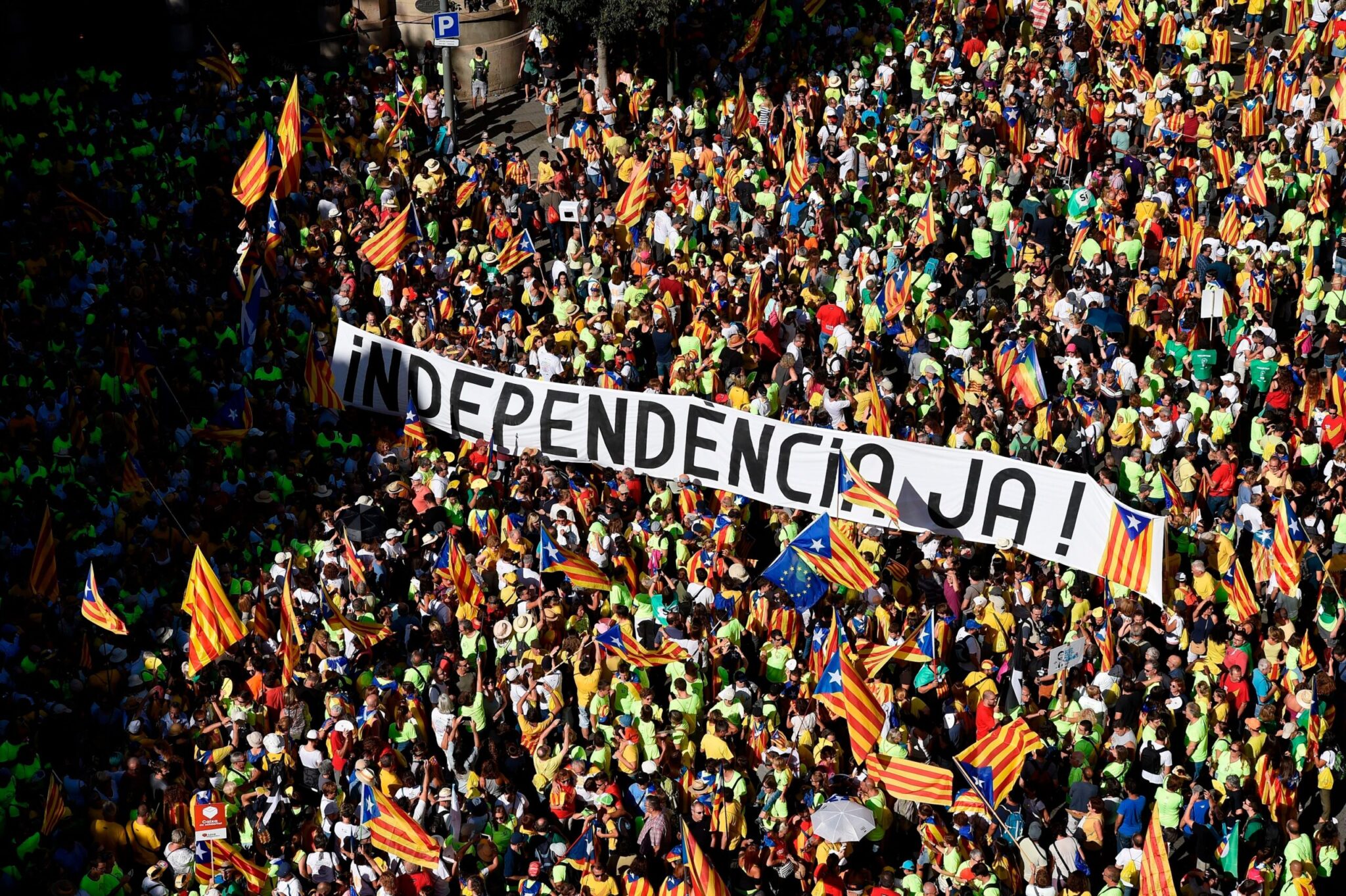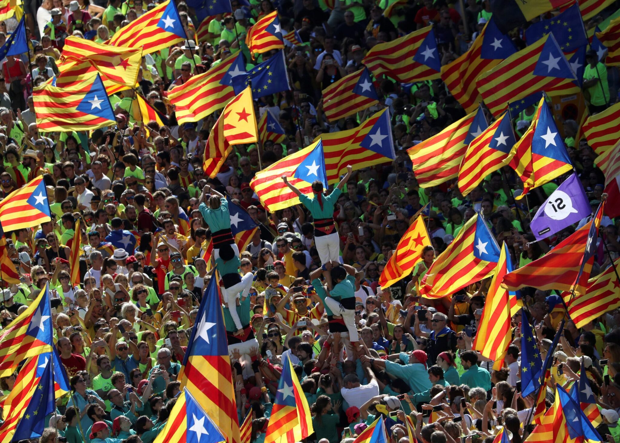 Οι εικόνες που τραβήχτηκαν από ελικόπτερα έδειχναν τους δρόμους της πόλης να έχουν κατακλυστεί από κόσμο. Δεκάδες χιλιάδες άνθρωποι, με υψωμένες τις σημαίες της ανεξαρτησίας, θα σχηματίσουν στο κέντρο της Βαρκελώνης έναν τεράστιο σταυρό, μήκους ενός χιλιομέτρου: ο σταυρός αυτός συμβολίζει το “X” που σκοπεύουν να γράψουν στο κουτάκι του “ναι” στα ψηφοδέλτια, την 1η Οκτωβρίου.