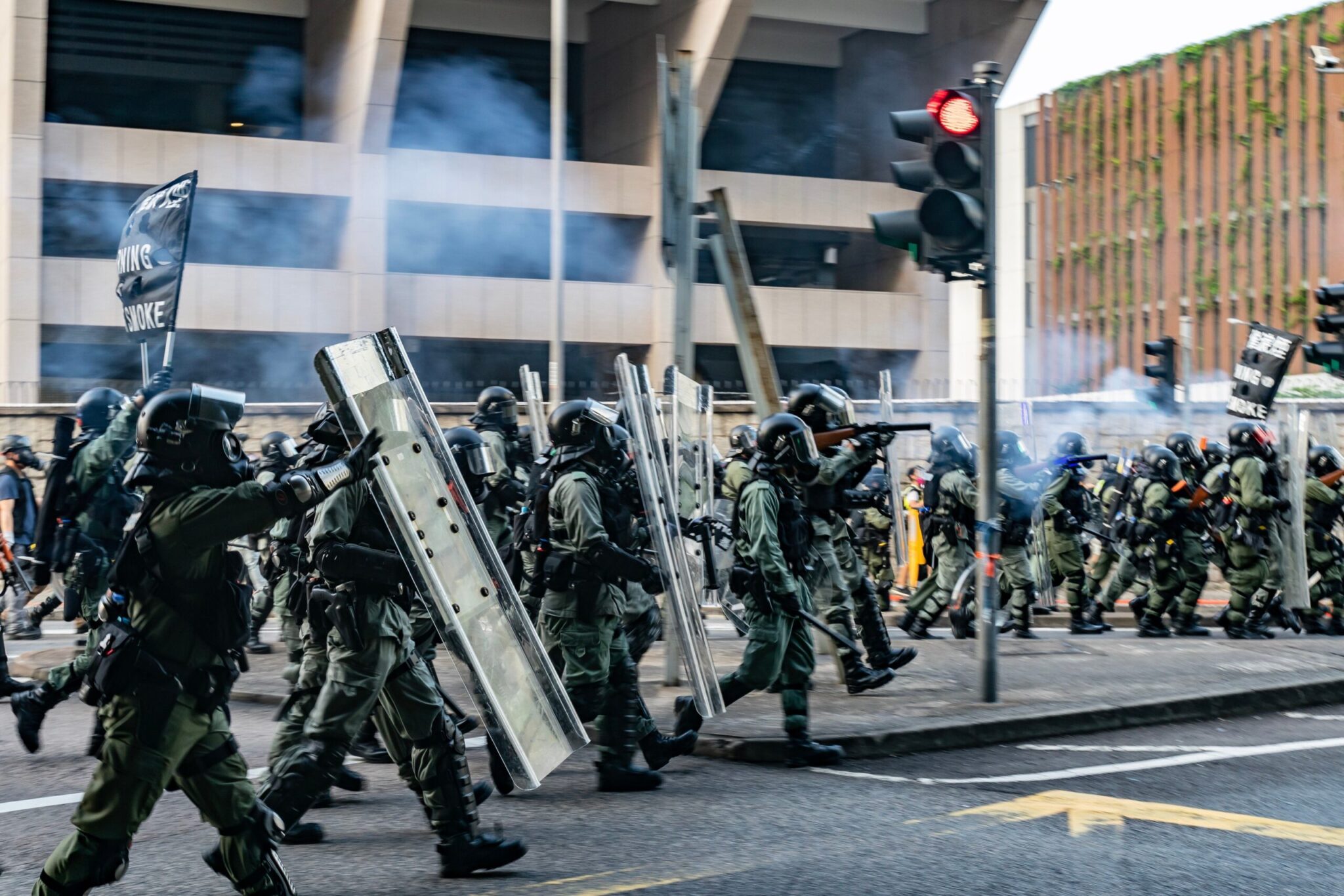 Κάποιοι από τους διαδηλωτές πέταγαν τούβλα στους αστυνομικούς έξω από την έδρα του Λαϊκού Απελευθερωτικού Στρατού της Κίνας, ενώ αποκαθήλωσαν και πυρπόλησαν ένα κόκκινο πανό που προανήγγειλε την 70η επέτειο από την ίδρυση της Λαϊκής Δημοκρατίας της Κίνας, την 1η Οκτωβρίου.