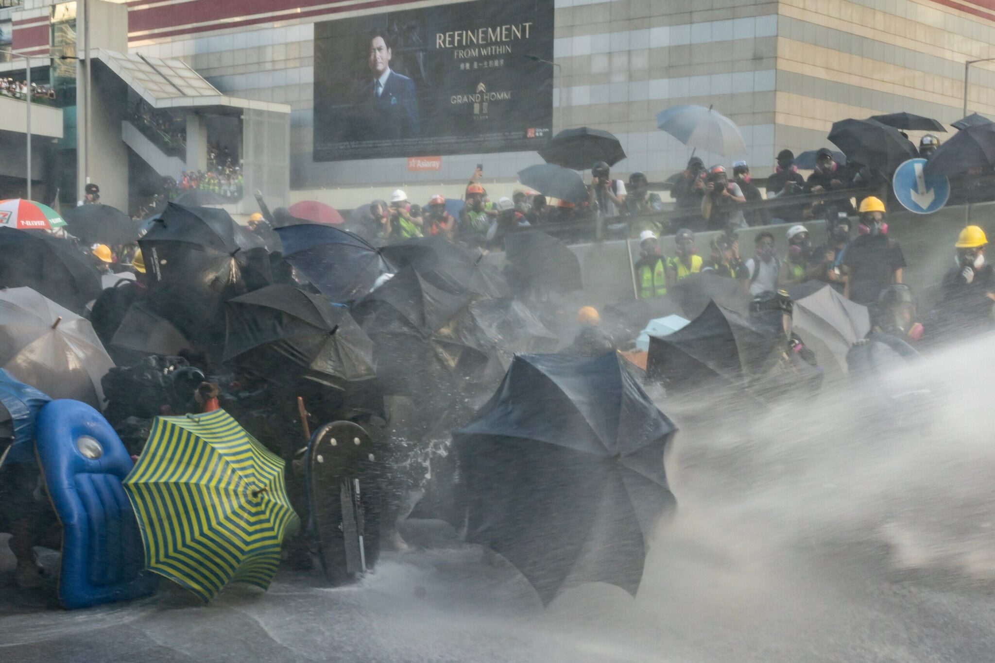 Η αστυνομία του Χονγκ Κονγκ χρησιμοποίησε την Κυριακή αντλίες νερού και δακρυγόνα για να διαλύσει τους διαδηλωτές που εκτόξευαν βόμβες μολότωφ και τούβλα κοντά στο κτίριο που στεγάζει το Νομοθετικό Συμβούλιο της πρώην βρετανικής αποικίας και σε γραφεία της κεντρικής κυβέρνησης.