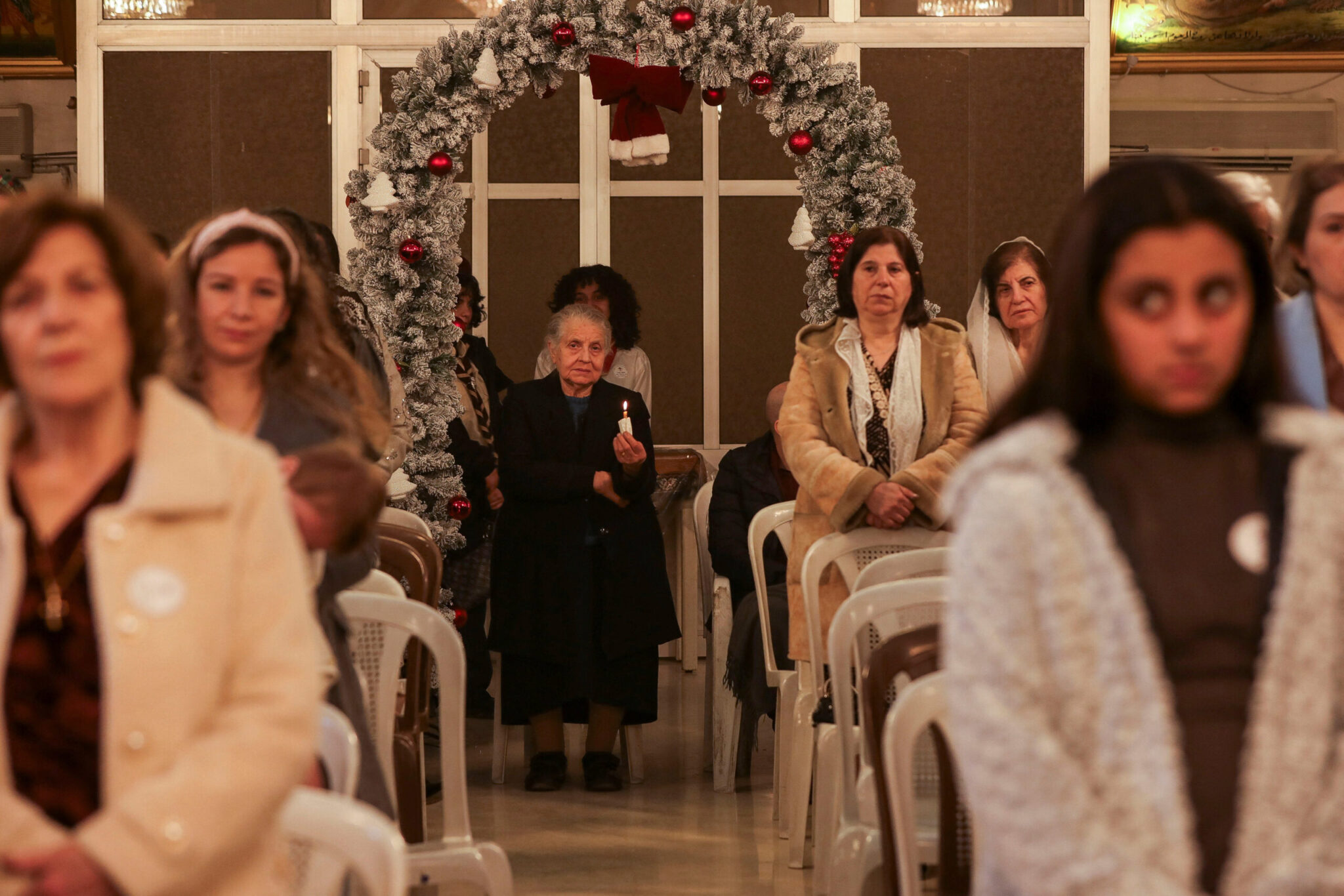 Χριστιανοί συμμετέχουν στους εορτασμούς της Χριστουγεννιάτικης Θείας Λειτουργίας στην εκκλησία του Αγίου Ιακώβου της Νισίβης στο Κάμισλι της Συρίας, στις 25 Δεκεμβρίου 2025. REUTERS/Orhan Qereman