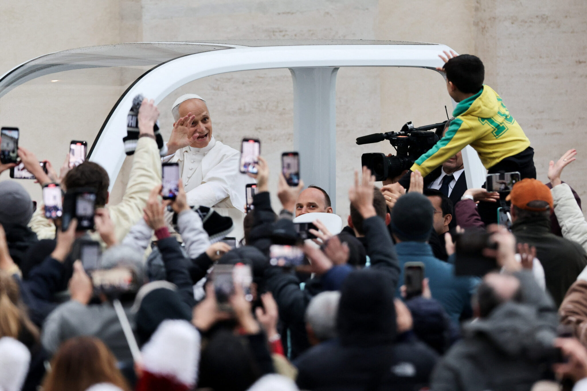 Ο Πάπας Λέων ΙΔ’ χαιρετά τους πιστούς από το παπικό όχημα πριν εκφωνήσει τον παραδοσιακό χριστουγεννιάτικο λόγο Urbi et Orbi, Βατικανό, στις 25 Δεκεμβρίου 2025. REUTERS/Yara Nardi