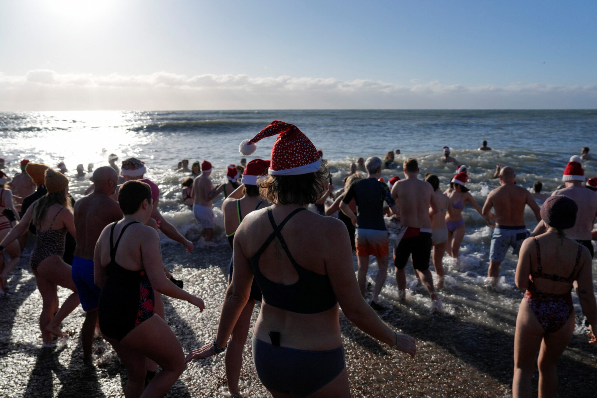 Άνθρωποι ετοιμάζονται να κολυμπήσουν στη θάλασσα, συμμετέχοντας στη χριστουγεννιάτικη βουτιά στην παραλία του Μπράιτον στη νότια Αγγλία, στη Βρετανία, στις 25 Δεκεμβρίου 2025. REUTERS/Carlos Jasso