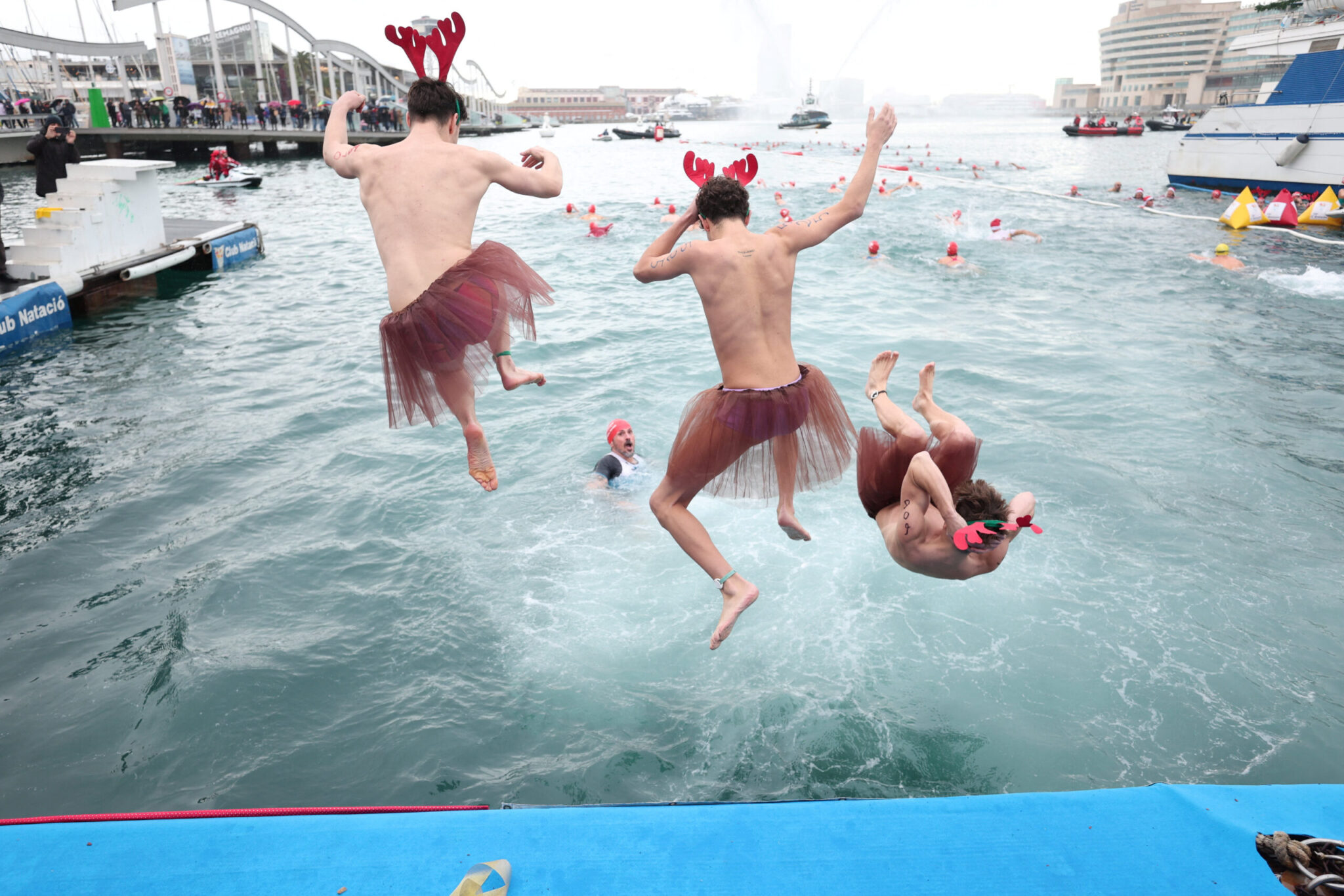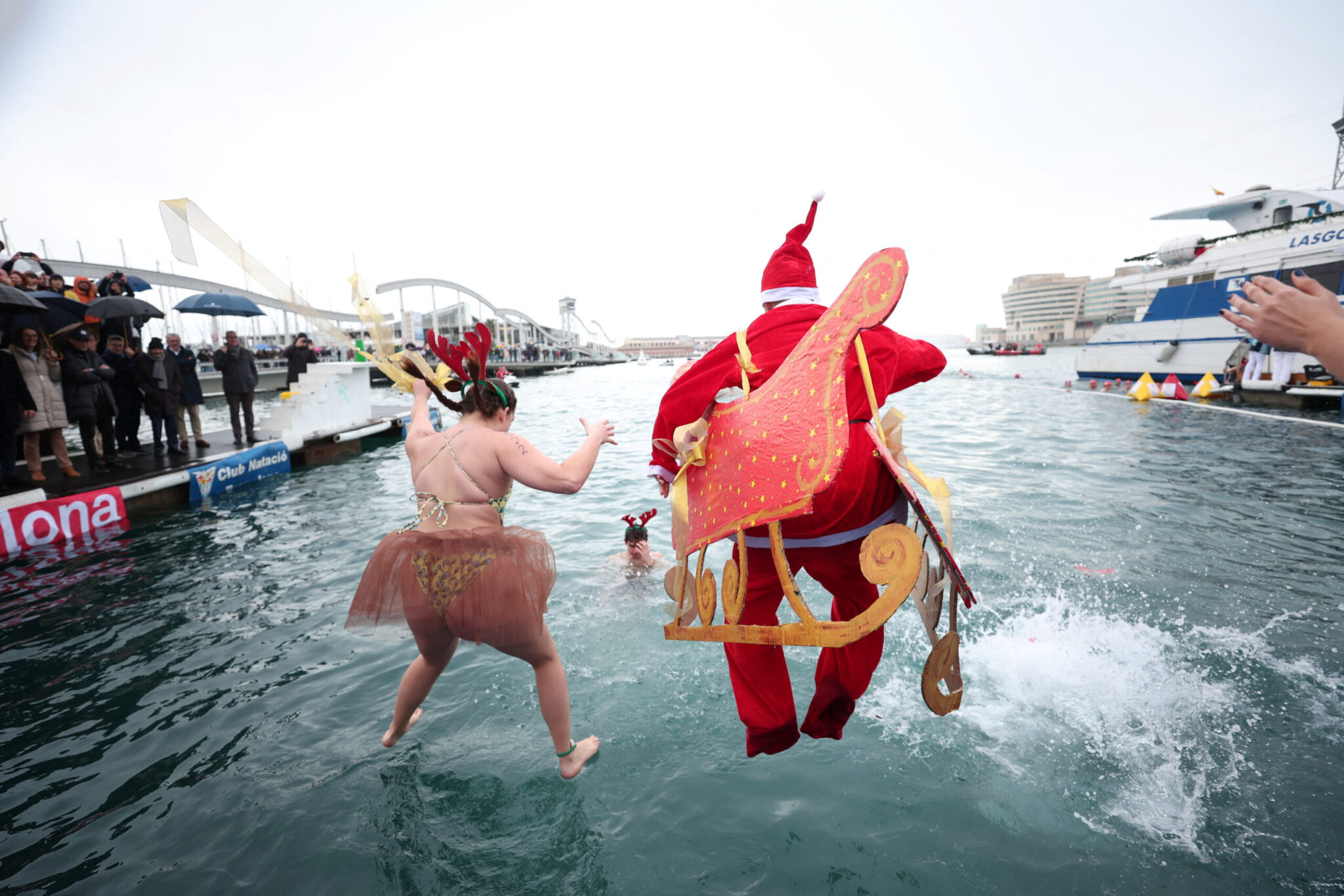 Άνθρωποι ντυμένοι με χριστουγεννιάτικες στολές βουτούν στη Μεσόγειο Θάλασσα κατά τη διάρκεια του κολυμβητικού αγώνα Copa Nadal (Κύπελλο Χριστουγέννων) στη Βαρκελώνη της Ισπανίας, στις 25 Δεκεμβρίου 2025. REUTERS/Bruna Casas