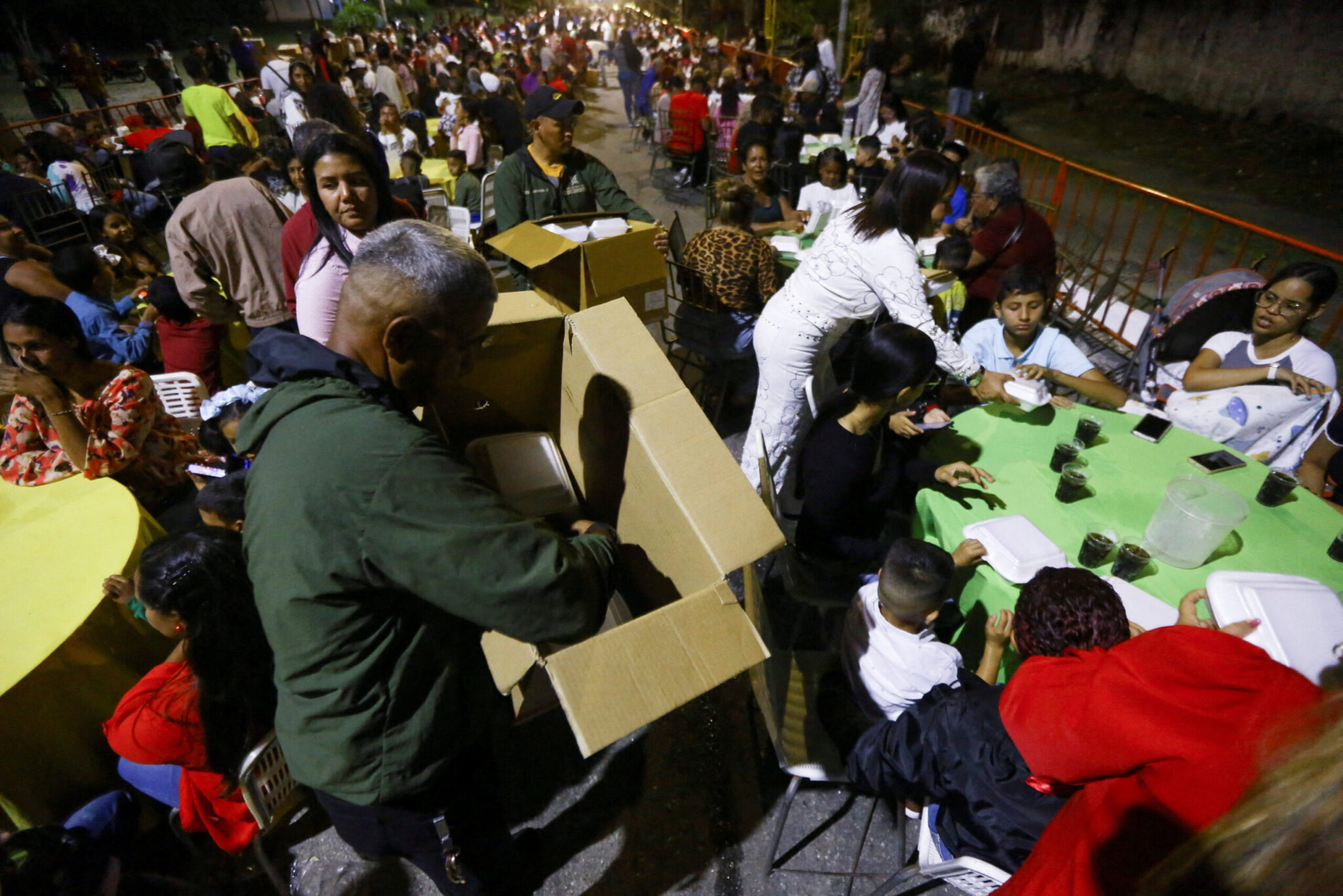 Άνθρωποι συμμετέχουν σε χριστουγεννιάτικο δείπνο που διοργανώθηκε από τη δημοτική αρχή στο Κοκορότε, στην πολιτεία Γιαρακουί της Βενεζουέλας, στις 24 Δεκεμβρίου 2025. REUTERS/Juan Carlos Hernandez