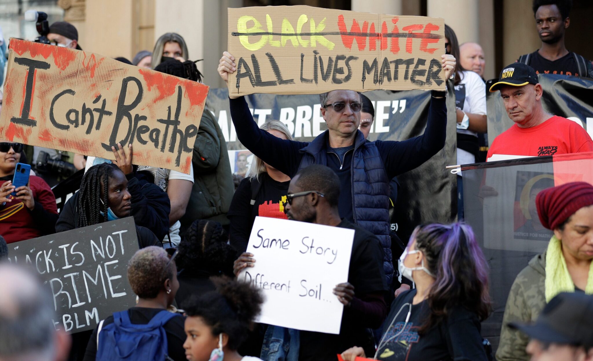 Η Αυστραλία ήταν η πρώτη χώρα που άνοιξε σήμερα τον χορό της παγκόσμιας οργής. Χιλιάδες άνθρωποι διαδήλωσαν σε πολλές πόλεις, κρατώντας πανώ με το σύνθημα «Δεν μπορώ να αναπνεύσω», τη φράση που επαναλάμβανε ο Φλόιντ όταν ο αστυνομικός που τον συνέλαβε γονάτισε στον λαιμό του, επί σχεδόν εννέα λεπτά.