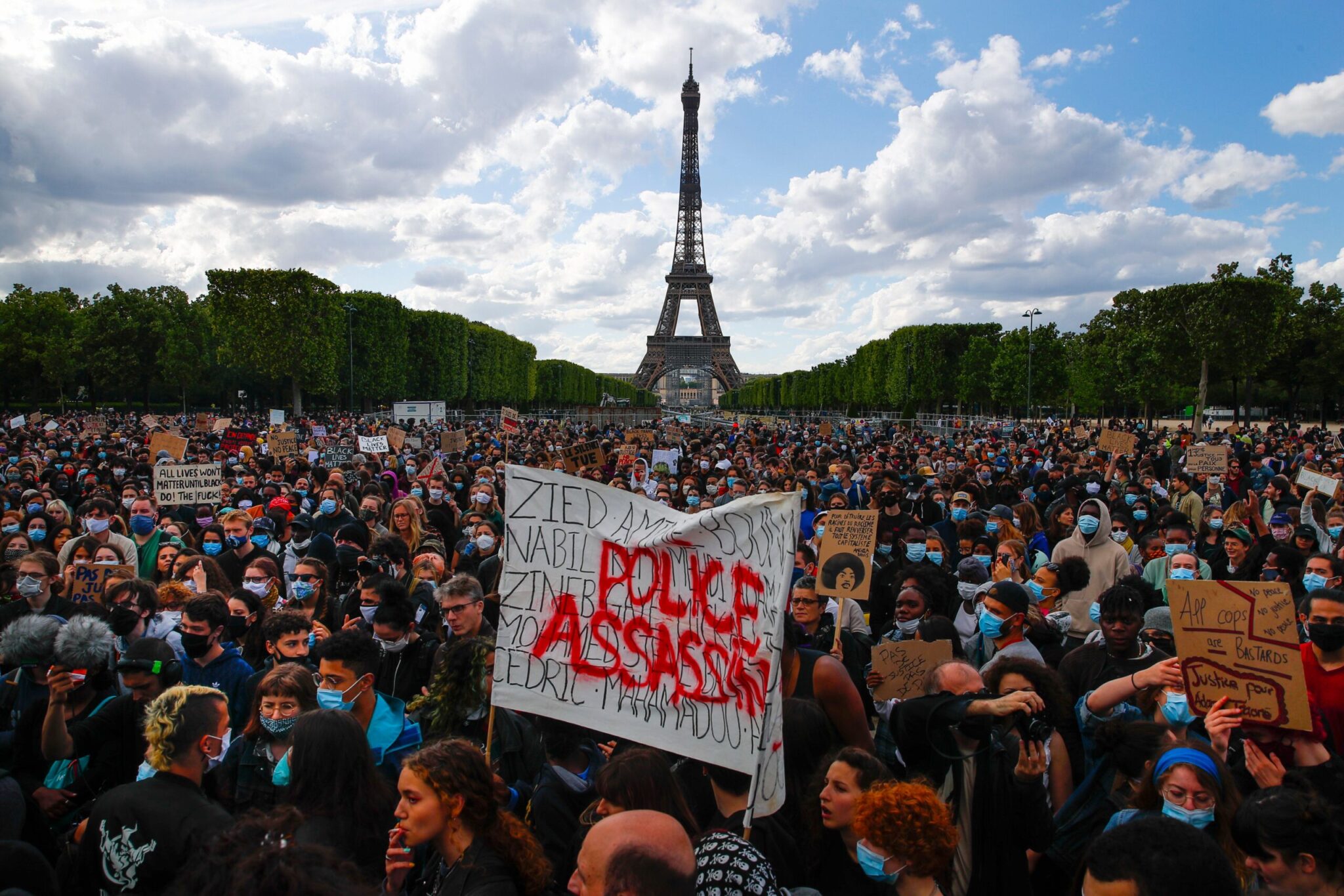 Στο Παρίσι, οι δύο διαδηλώσεις κατά της αστυνομικής βίας και της ατιμωρησίας των δυνάμεων ασφαλείας είχαν απαγορευτεί λόγω της πανδημίας της Covid-19. Ωστόσο αρκετές εκατοντάδες άνθρωποι συγκεντρώθηκαν νωρίς το απόγευμα στον Πύργο του Άιφελ και στην Πλας ντε λα Κονκόρντ, κοντά στην αμερικανική πρεσβεία και το προεδρικό μέγαρο.