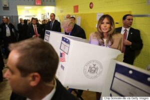 Ο Τραμπ ψήφισε στο εκλογικό κέντρο του κεντρικού Μανχάταν, όπου είναι εγεγραμμένος, συνοδευόμενος από την σύζυγό του, Μελάνια Τραμπ. Κατά την είσοδό του στο σχολείο, έδωσε ορισμένα χαρτονομίσματα σε μαθητές που πουλούσαν κουλουράκια για φιλανθρωπικό σκοπό.