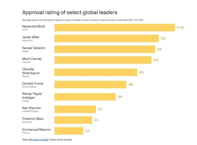 Δημοσκόπηση του Axios καταγράφει πόσο δημοφιλείς είναι οι ηγέτες μεγάλων χωρών με τους Ευρωπαίους πρωθυπουργούς να βρίσκονται στις τελευταίες θέσεις.
