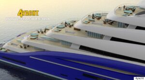 Το Double Century που θα διαθέτει 9 καταστρώματα, δύο ελικοδρόμια, ένα μινι υποβρύχιο, τρία μικρότερα σκάφη και θα έχει 70 άτομα πλήρωμα, θα προωθηθεί μέσω της ναυλομεσιτικής 4yacht, που εδρεύει στο Fort Lauderdale της Φλόριντα.