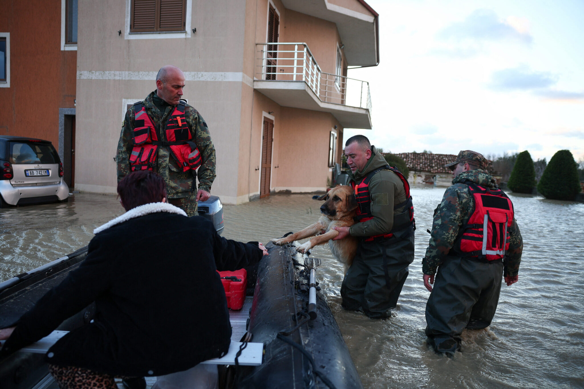 Συνεργεία έκτακτης ανάγκης χρησιμοποίησαν βάρκες για να απεγκλωβίσουν κατοίκους που παρέμειναν παγιδευμένοι στα σπίτια τους. Τα περισσότερα προβλήματα εντοπίζονται σε Δυρράχιο, Φιέρι και Αυλώνα, καθώς η στάθμη του νερού στον ποταμό Βιόσα ξεπέρασε ακόμα και τα εννιά μέτρα, σύμφωνα με το υπουργείο Άμυνας της Αλβανίας.